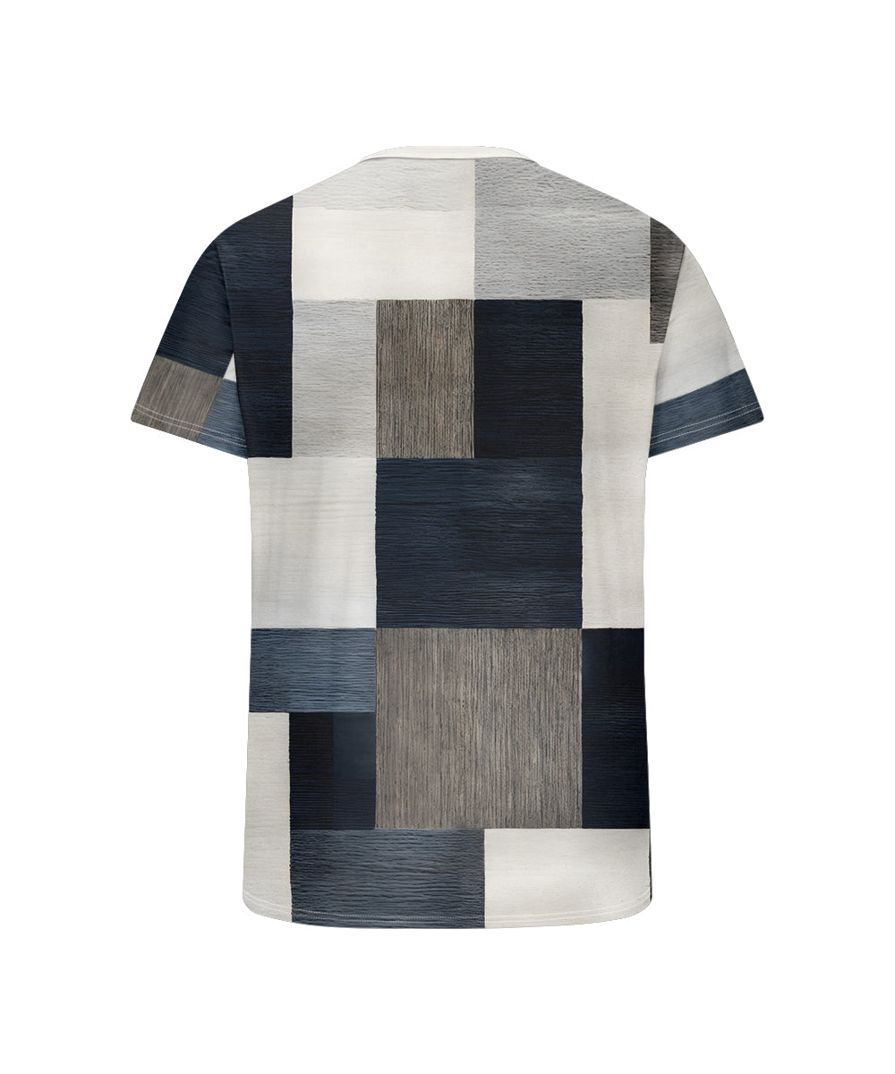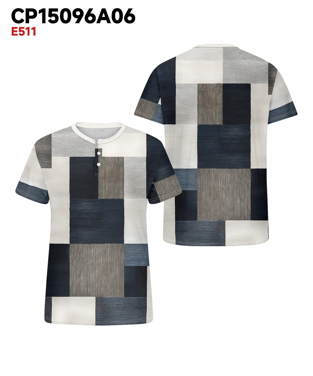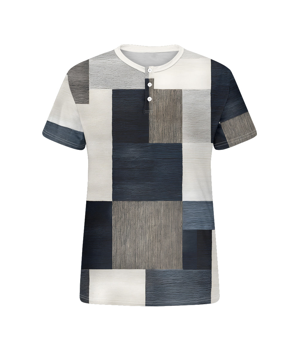 Men's Plus Size Daily Casual Blue And White Grey Geometric Print Henry Collar Button Short Sleeve T-Shirt
