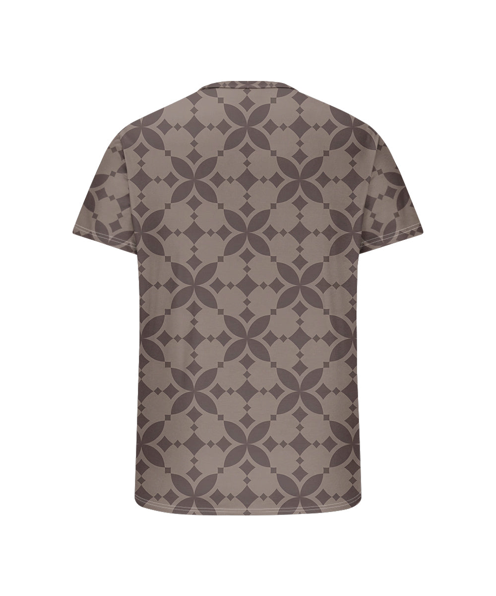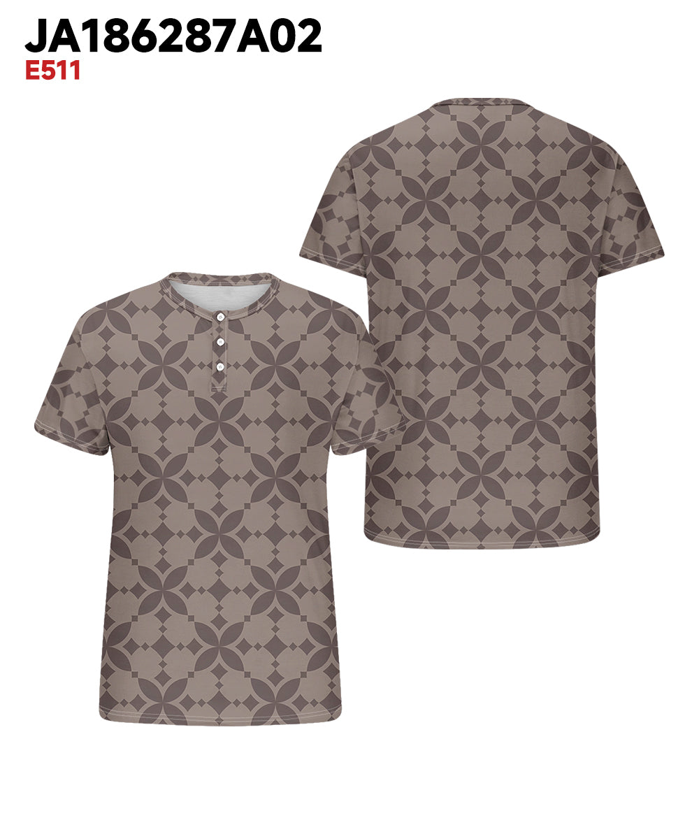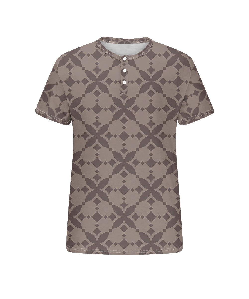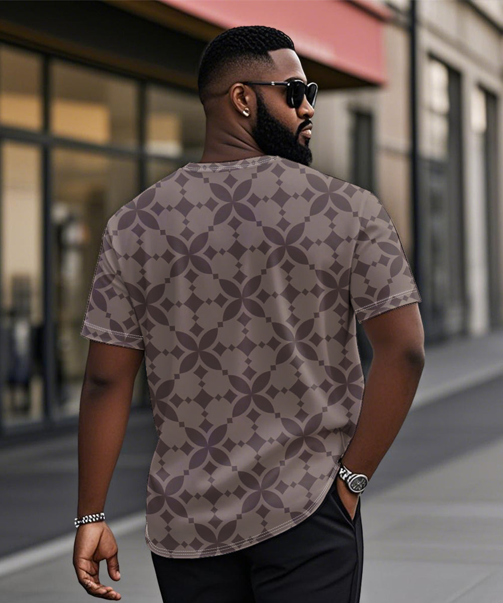Men's Plus Size Daily Casual Brown Diamond Geometric Print Henley Collar Button Short Sleeve Tee