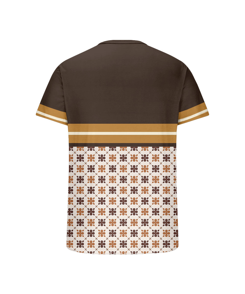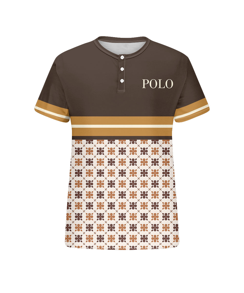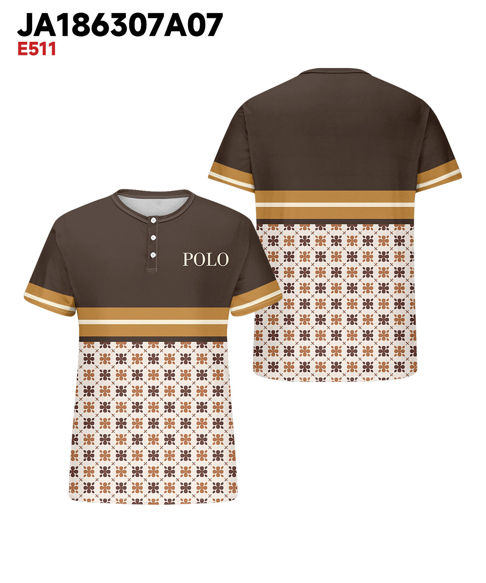 Men's Plus Size Daily Casual Brown Striped Alphabet Print Henry Collar Button Short Sleeve Tee