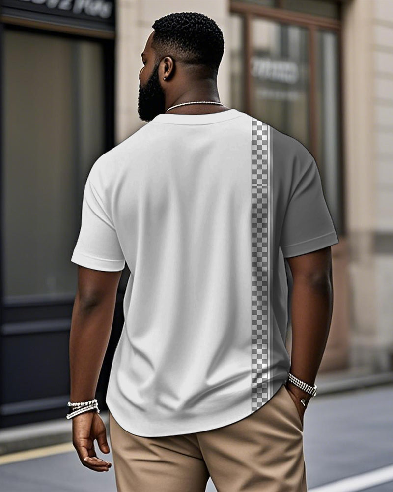Men's Plus Size Daily Casual Gray Plaid Letter Print Henry Collar Button Short Sleeve T-Shirt