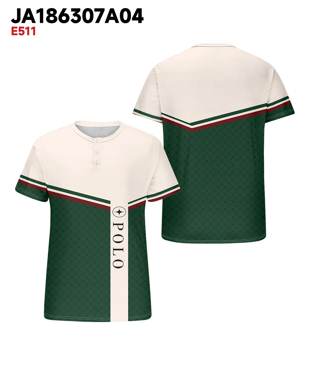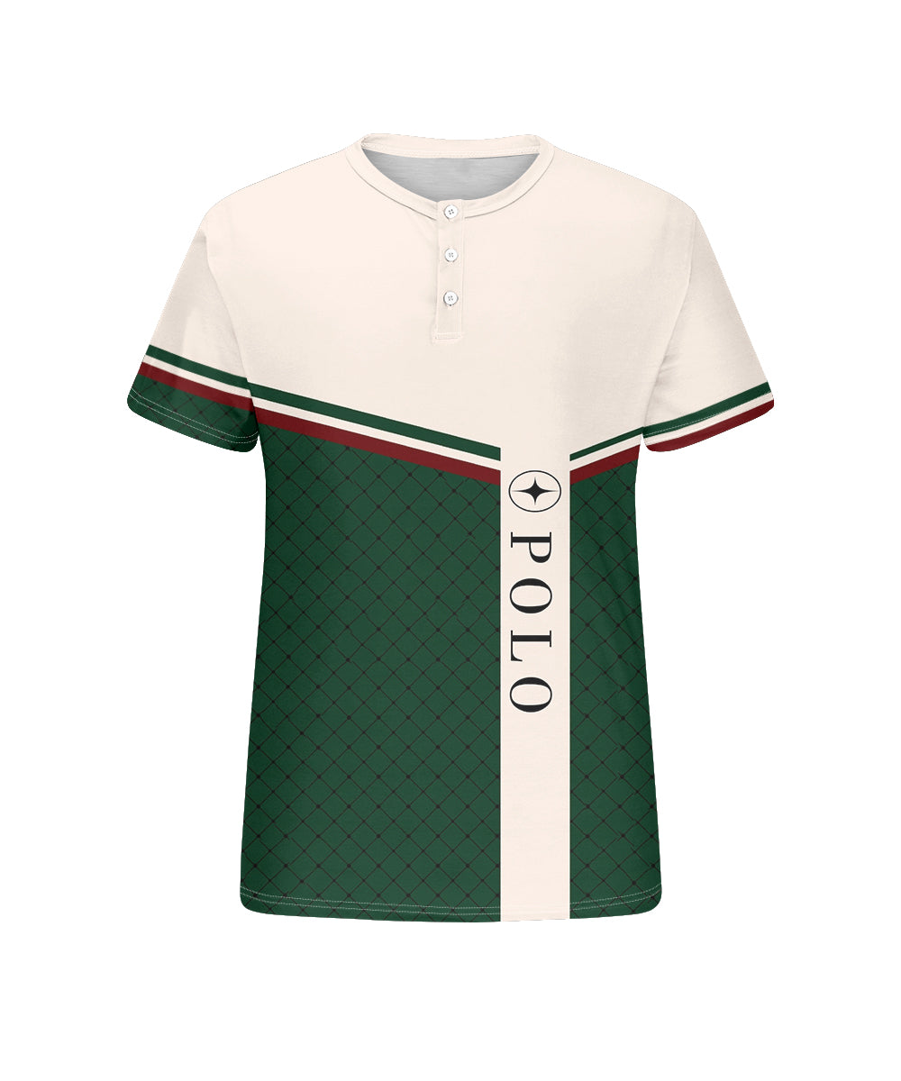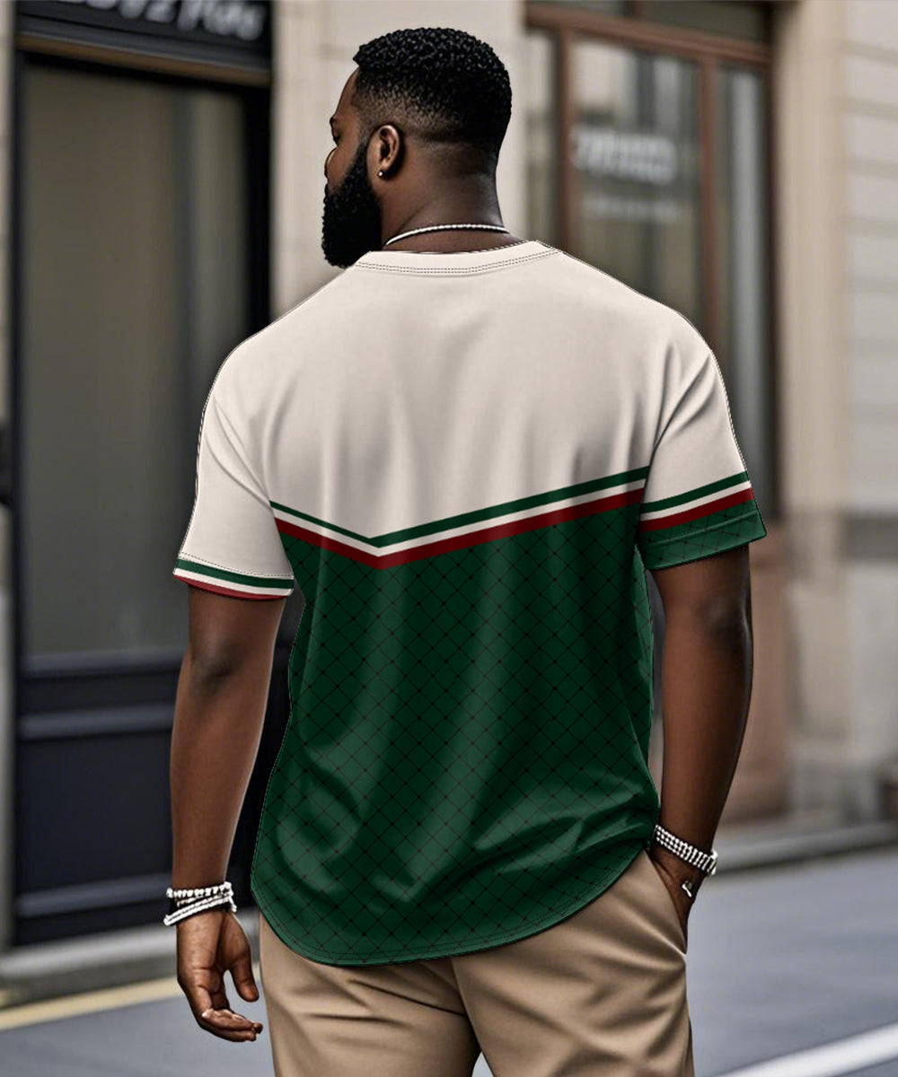 Men's Plus Size Daily Casual Green Stripe Alphabet Print Henry Collar Button Short Sleeve T-Shirt