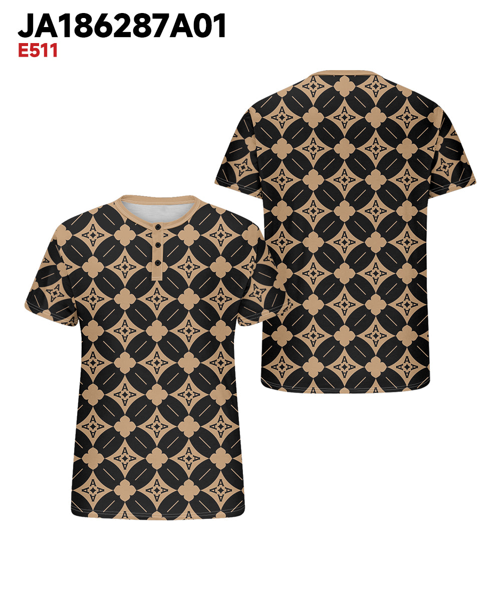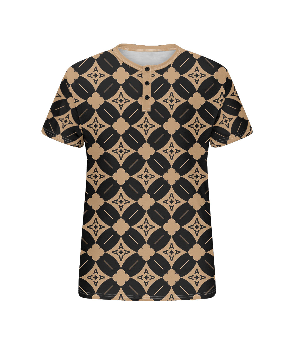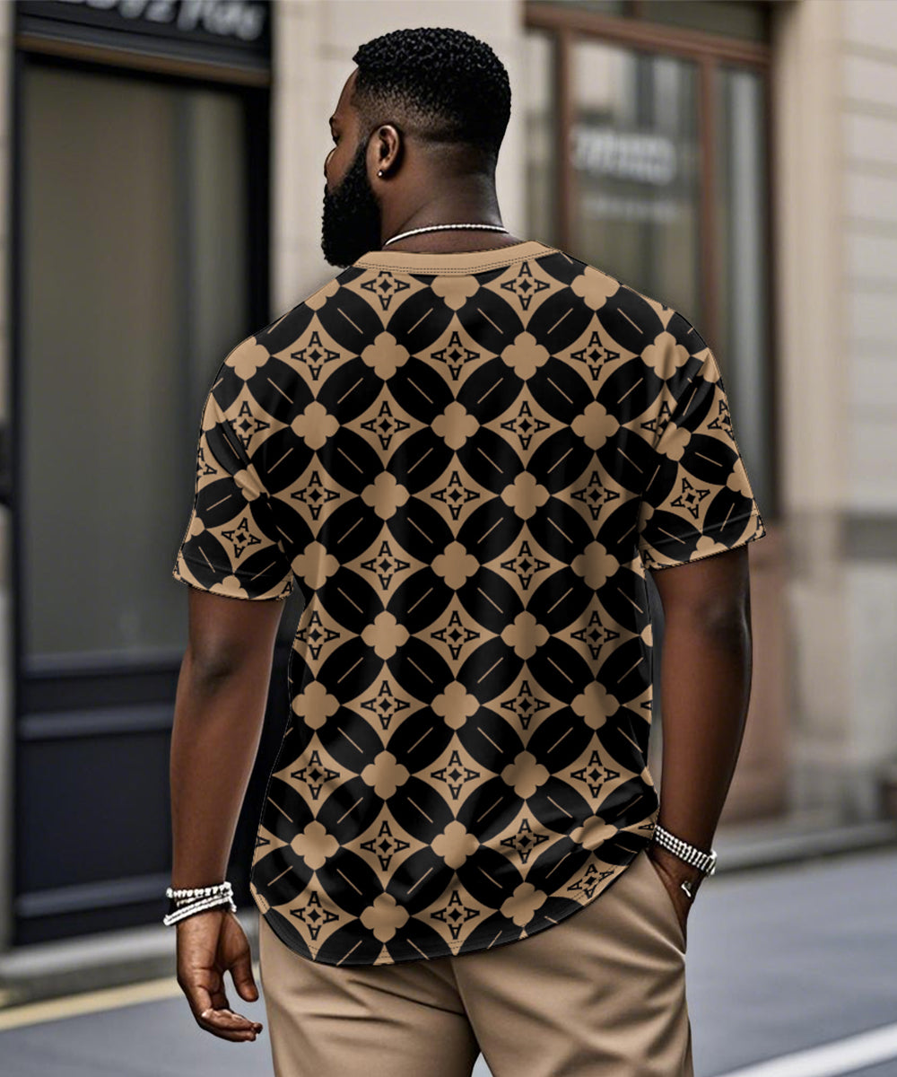 Men's Plus Size Daily Casual Khachi Geometric Diamond Print Henry Collar Button Short Sleeve T-Shirt