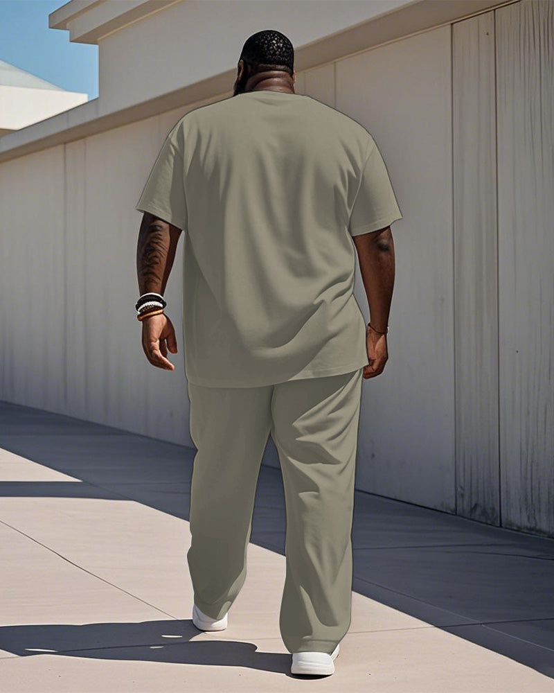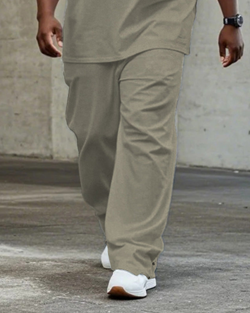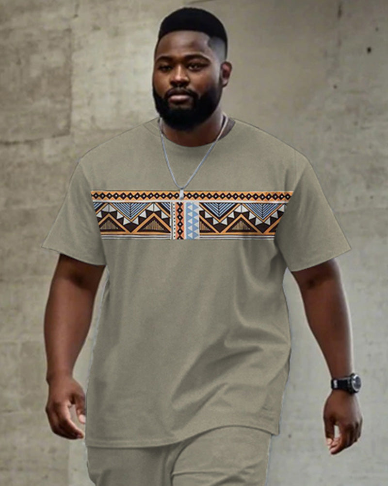 Men's Plus Size Daily Casual Khaki Color Matching Ethnic Style Printed T-shirt Trousers Suit