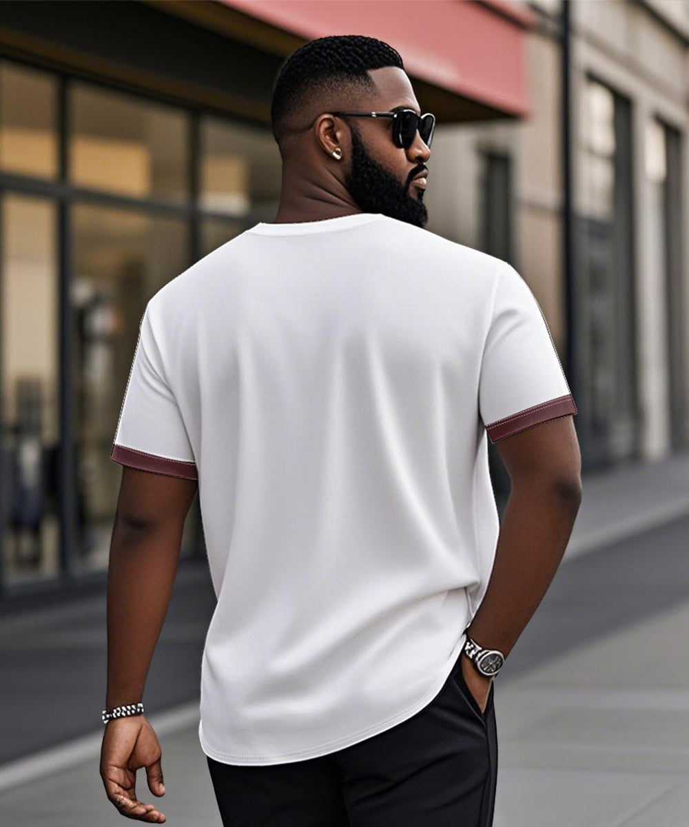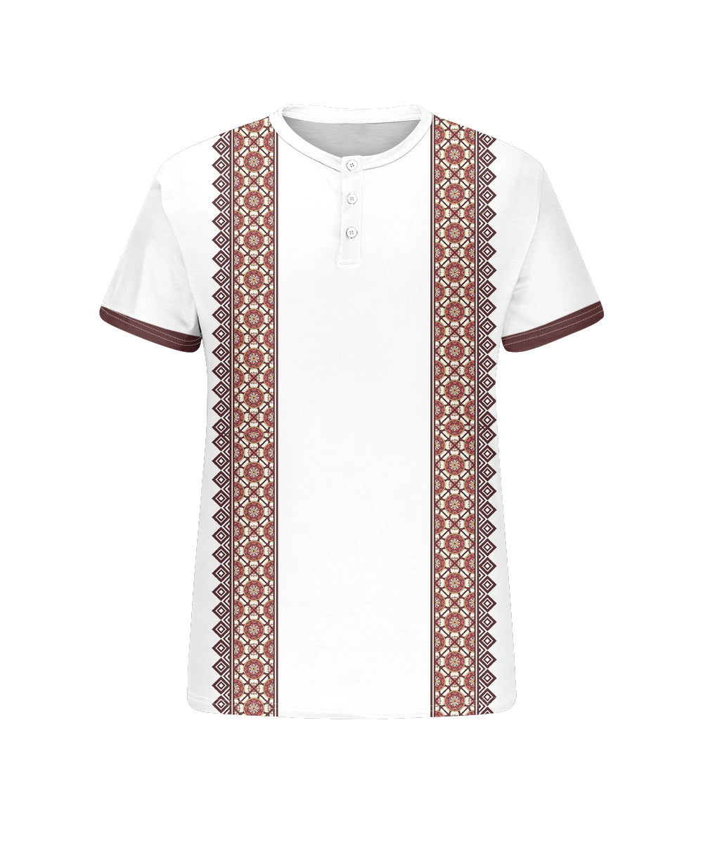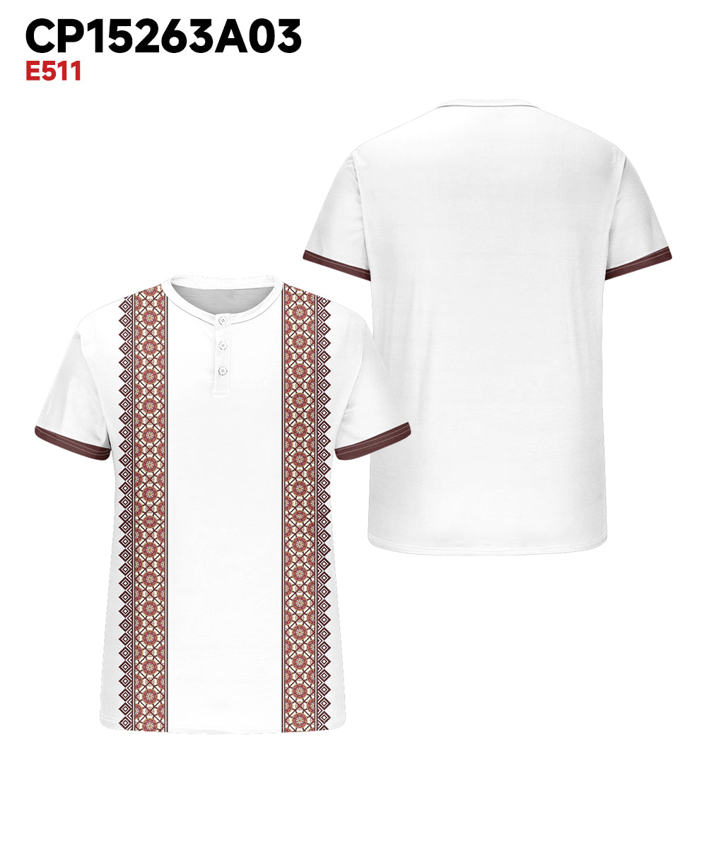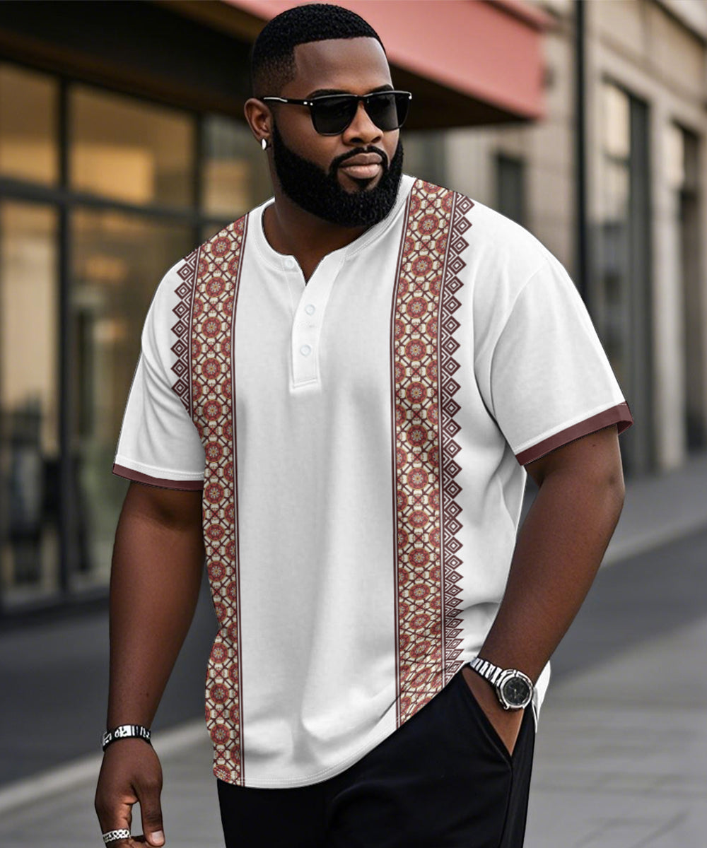 Men's Plus Size Daily Casual Red Pattern Printed Henry Collar Button Short Sleeve T-Shirt