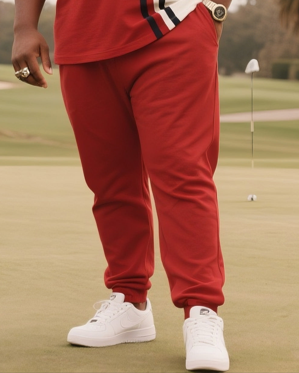 Men's Plus Size Daily Casual Red Spell White Short Sleeve Simple Striped Polo Pants Suit