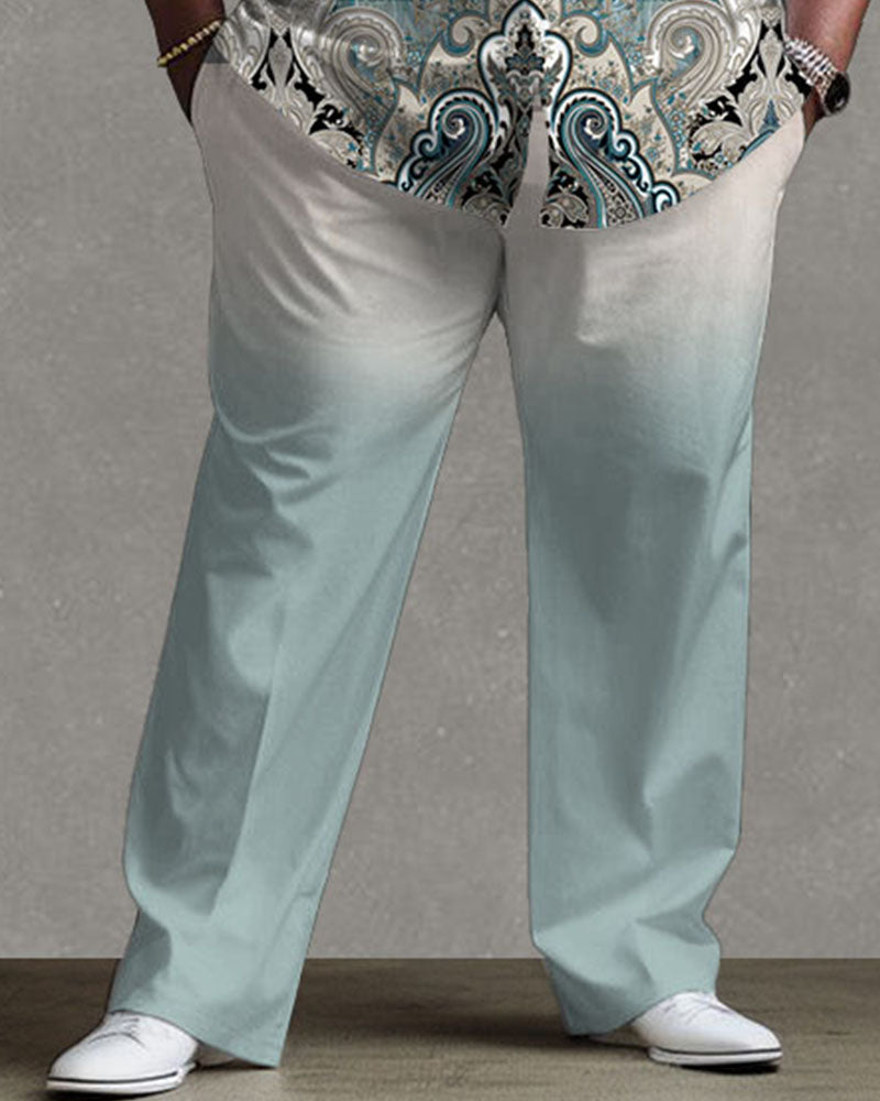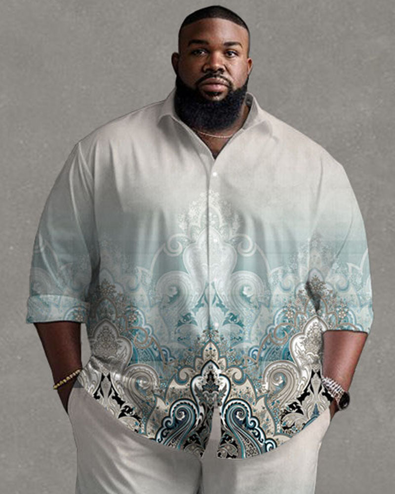 Men's Plus Size Daily Casual Retro Gradient Pattern Long Sleeve Shirt Trousers Suit