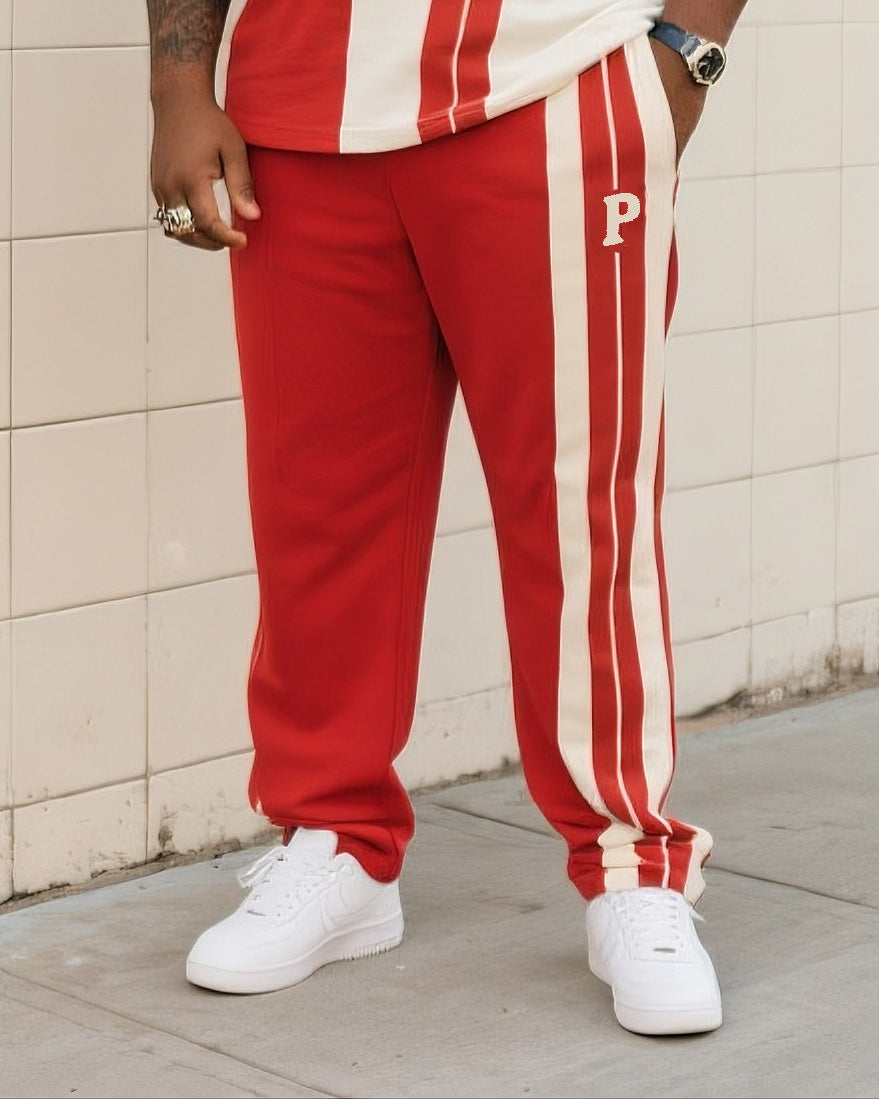 Men's Plus Size Daily Casual Simple Slant Striped Red Short Sleeve POLO Trousers Suit