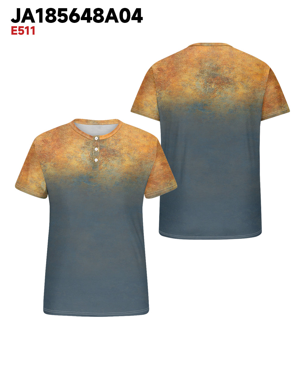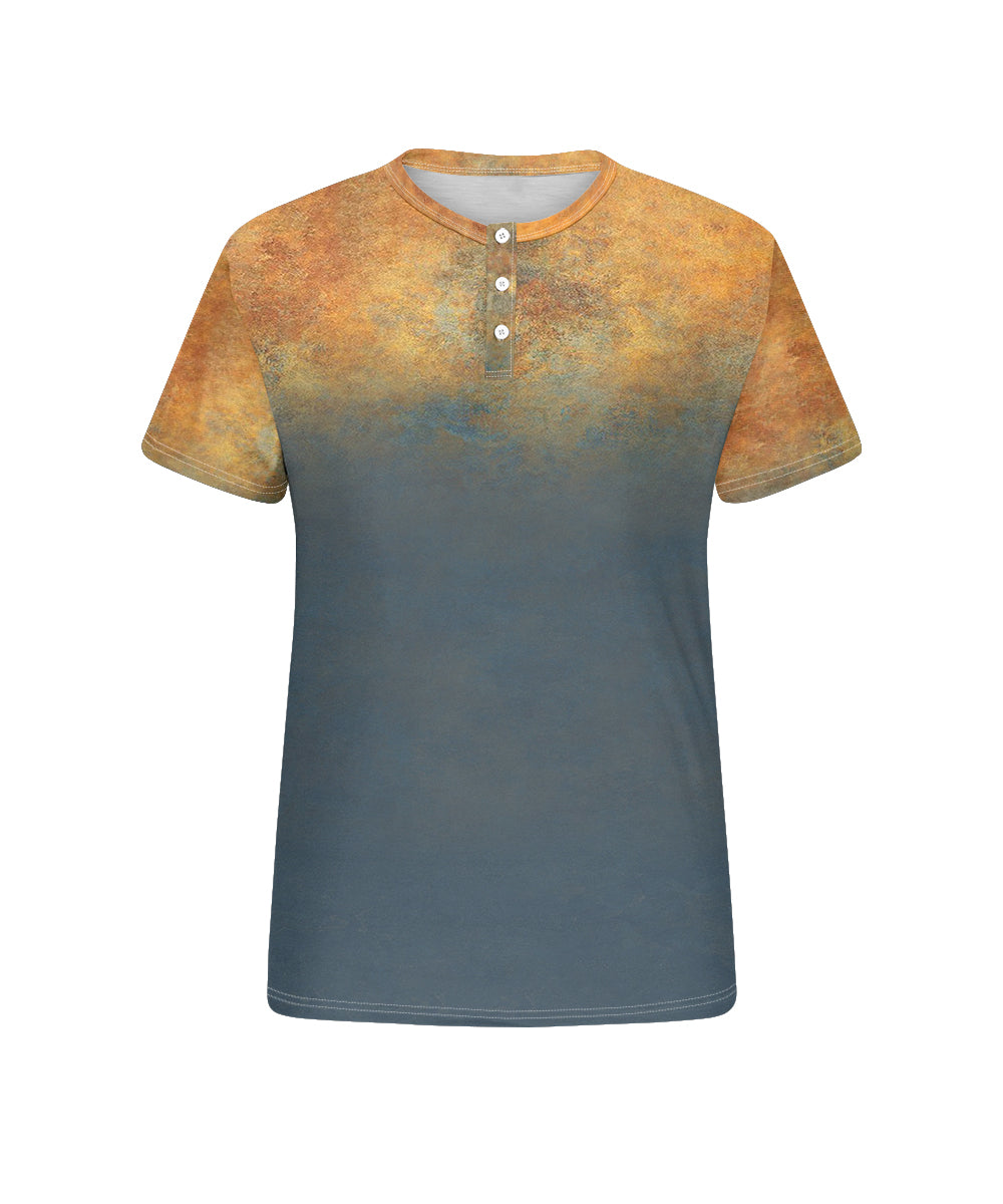 Men's Plus Size Daily Casual Yellow Blue Gradient Print Henry Collar Button Short Sleeve T-Shirt