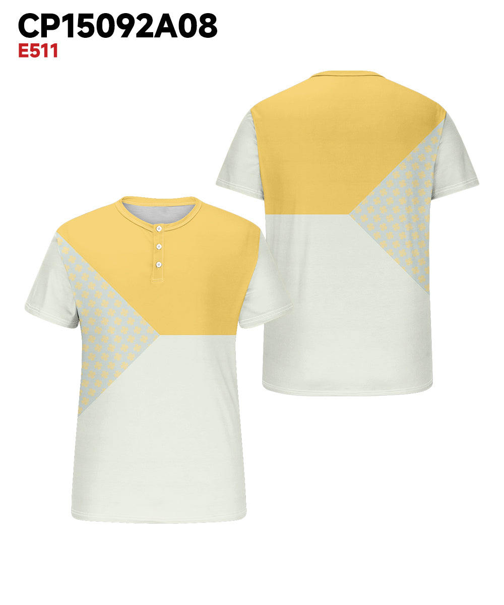 Men's Plus Size Daily Casual Yellow Patchwork Geometric Print Henry Collar Button Short Sleeve T-Shirt
