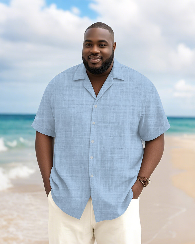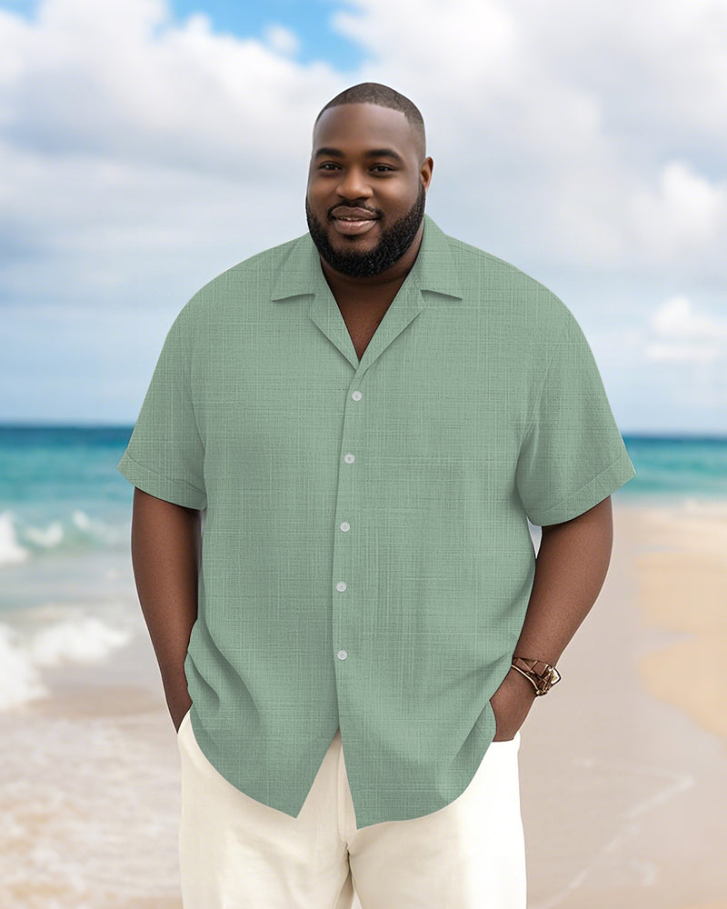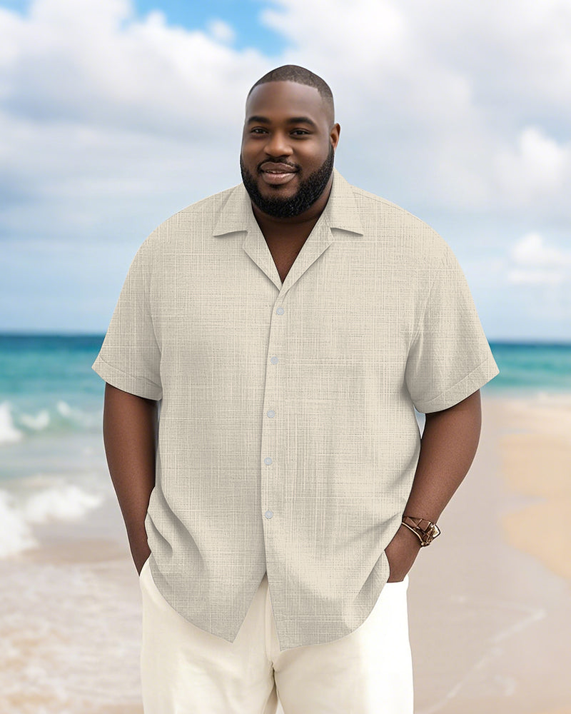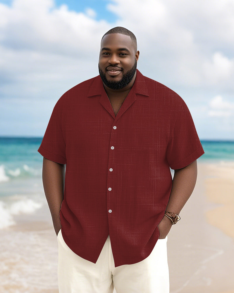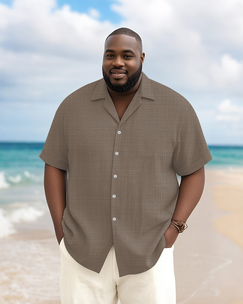 Men's Plus Size Daily Solid Color Short Sleeve Bamboo Hemp Texture Shirt
