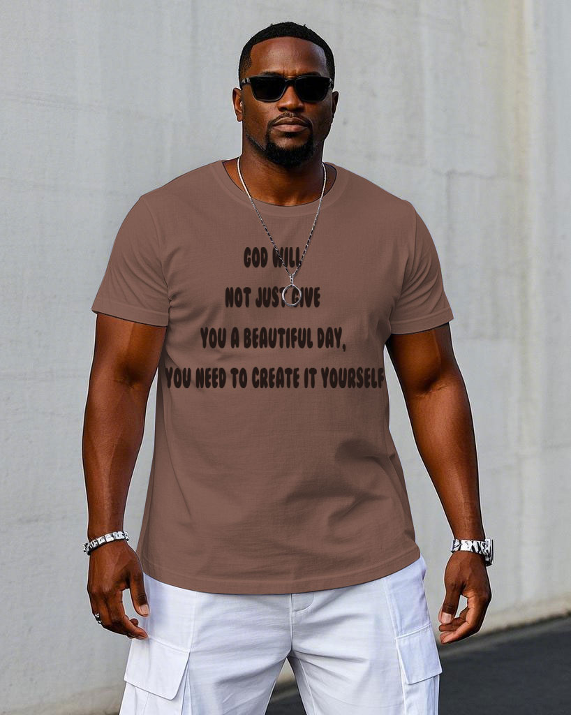 Men's Plus Size Earthy Slogan Print Short Sleeve T-shirt