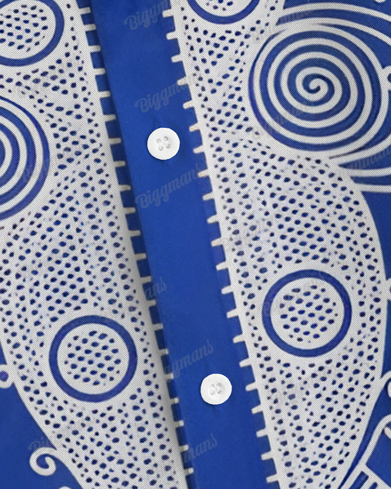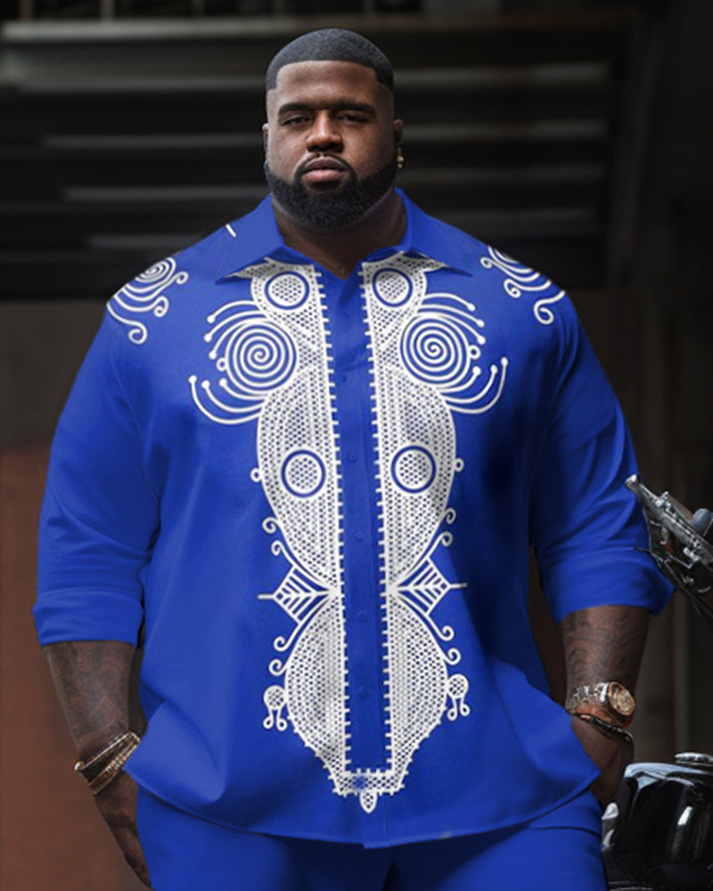 The round totem brings you the charm of ethnic style. This men's blue two-piece set is decorated with elegant, vintage white round totem prints. Its loose cut shows a calm attitude and is tailored for plus-size men. It can be easily controlled whether it is for casual or formal occasions. Don’t just take our word for it - try it and see!
