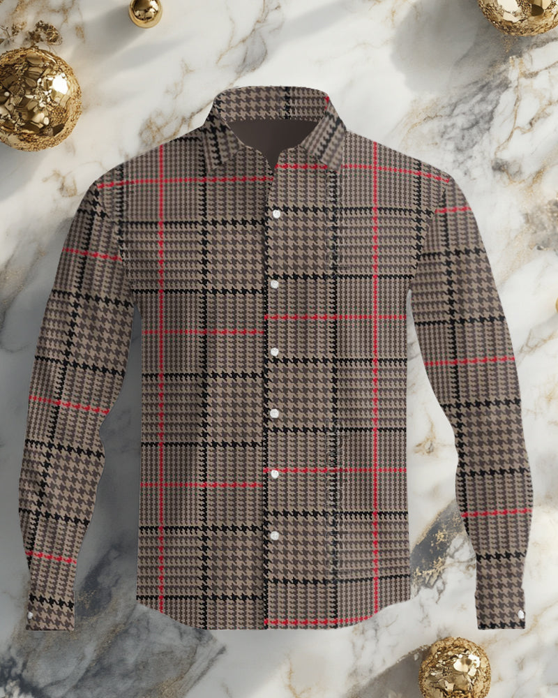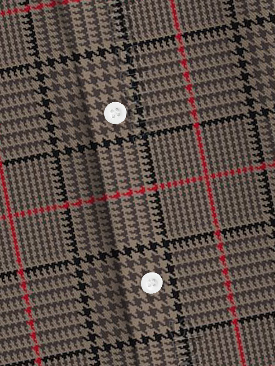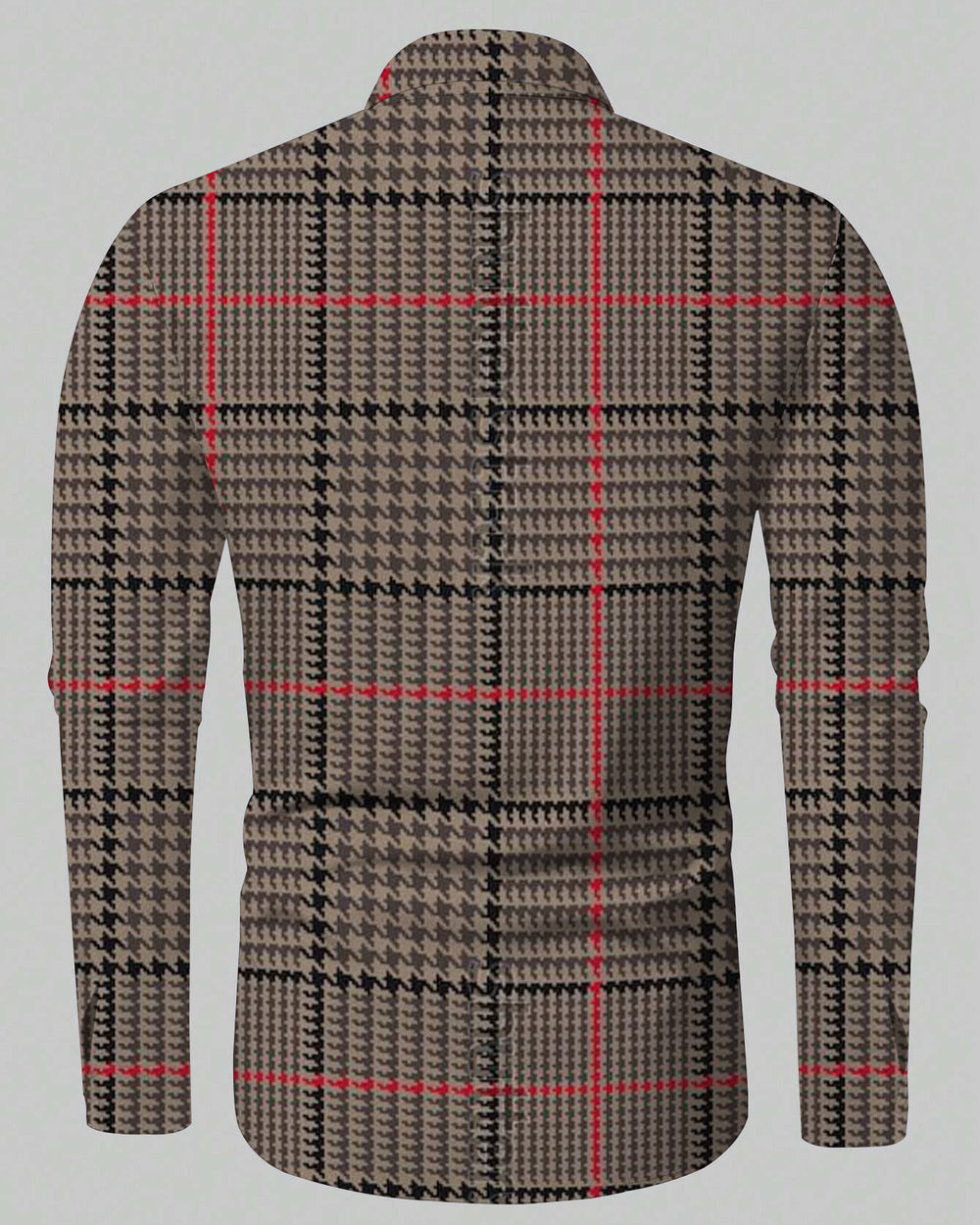 Featured in classic brown , this shirt subtly enhances your silhouette. The timeless plaid print exudes a nostalgic, folk-inspired charm, blending heritage style with modern appeal. Perfectly versatile, this shirt transitions effortlessly between formal and casual settings, making it an essential addition to any wardrobe.