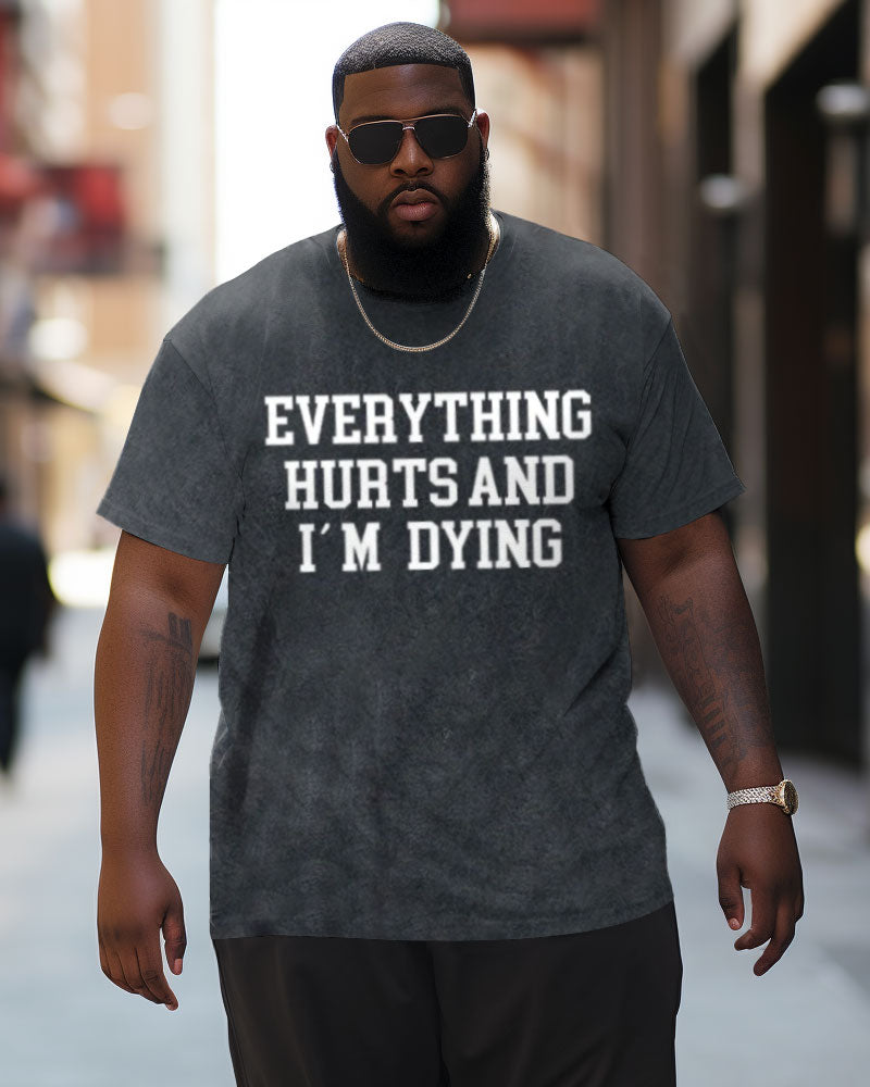Men's Plus Size Everything Hurts And I'm Dying Washed Gym Crew Neck Short Sleeve T-Shirt