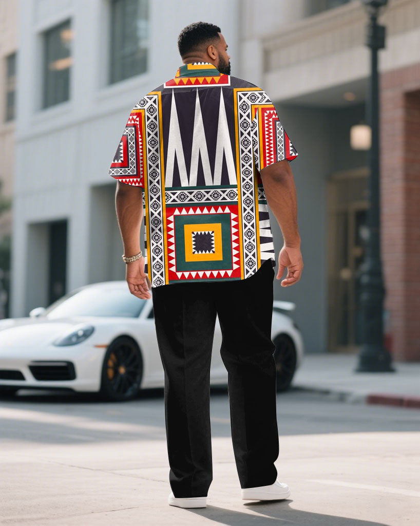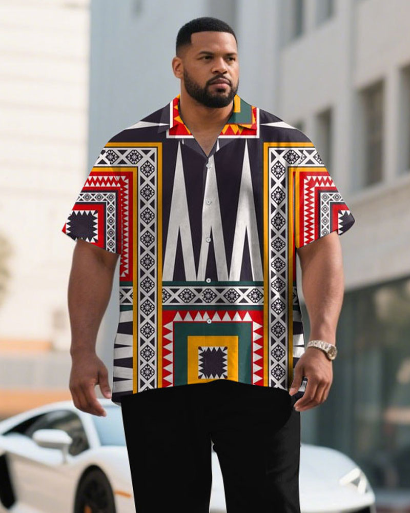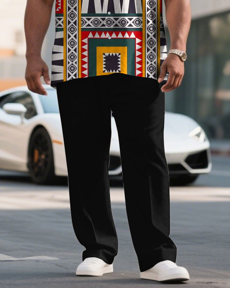 Men's Plus Size Exaggerated Color Design Pattern Short Sleeve Shirt Trousers Suit
