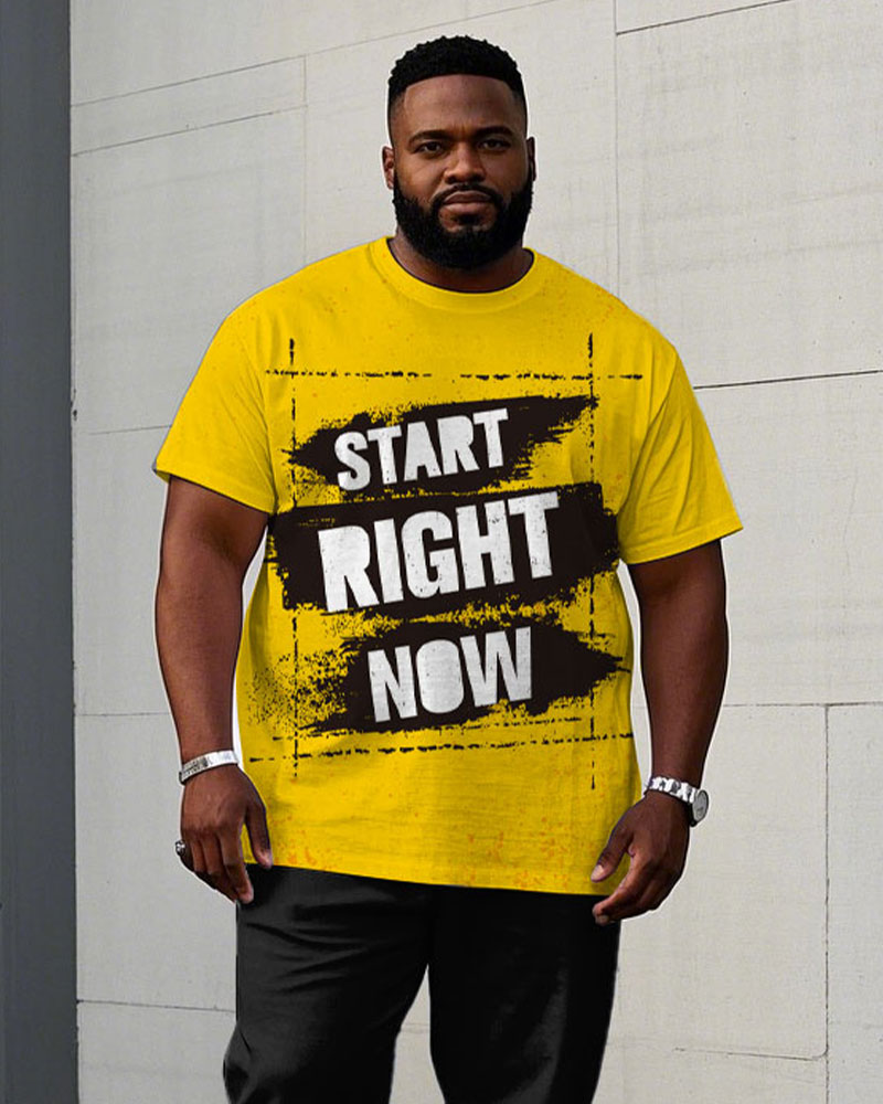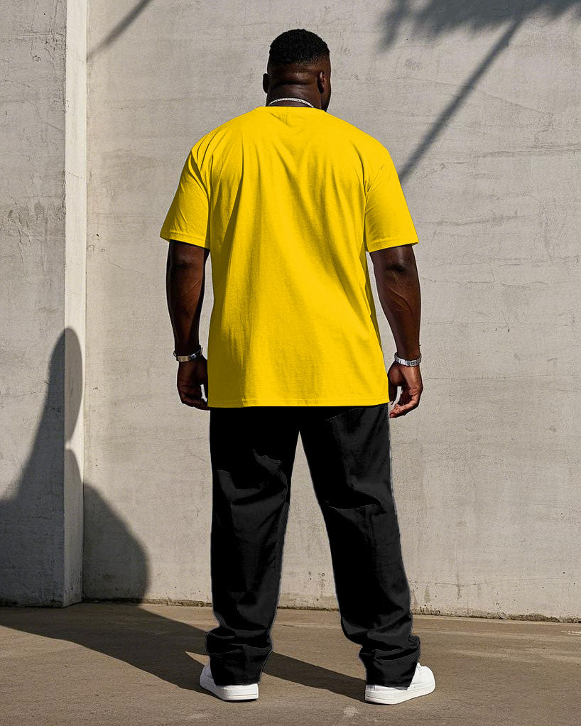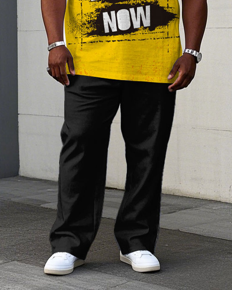 Men's Plus Size Fashion Chest Ink Slogan Printed Short-sleeved T-shirt Trousers Suit