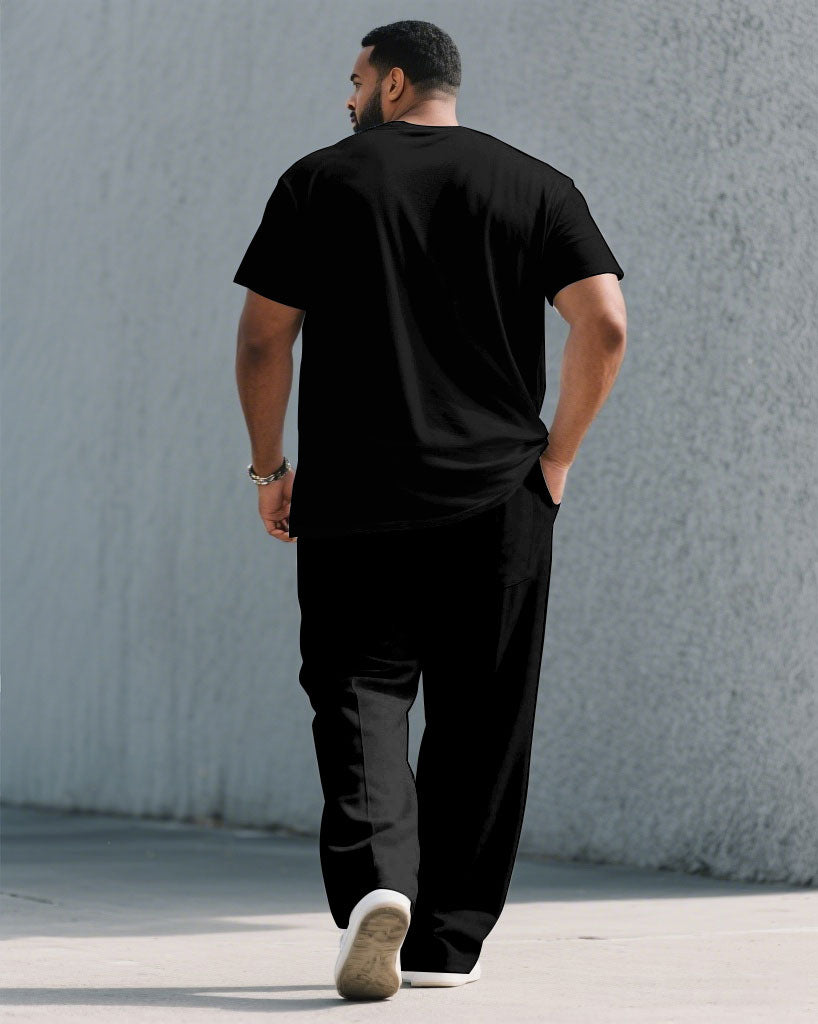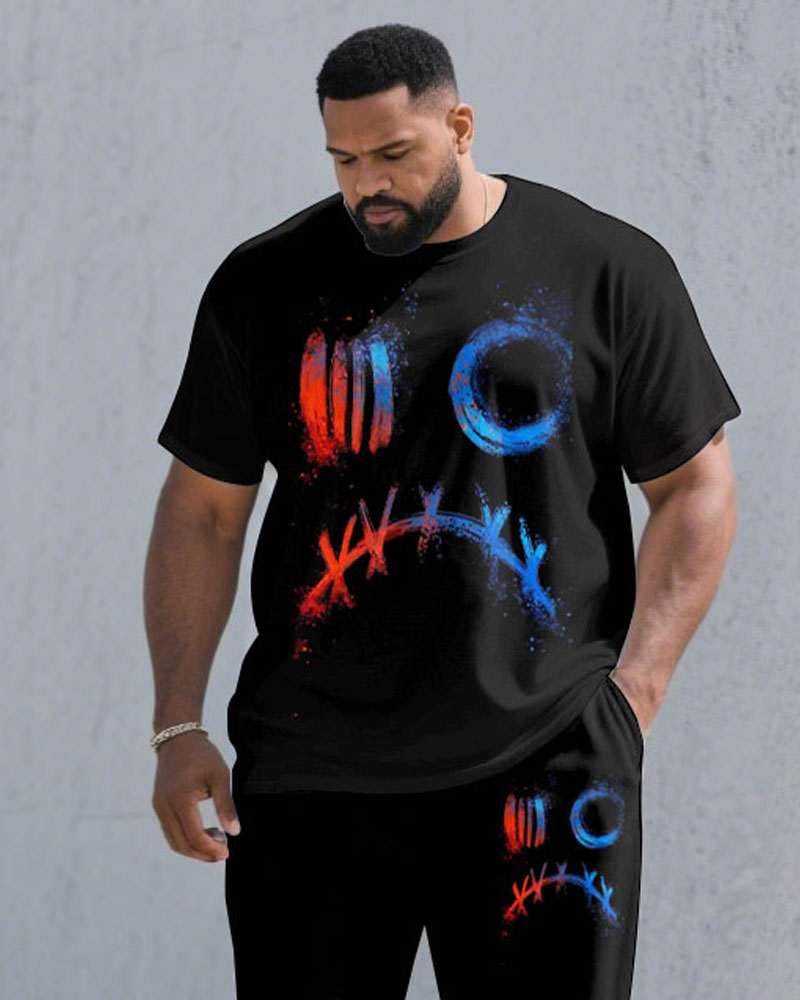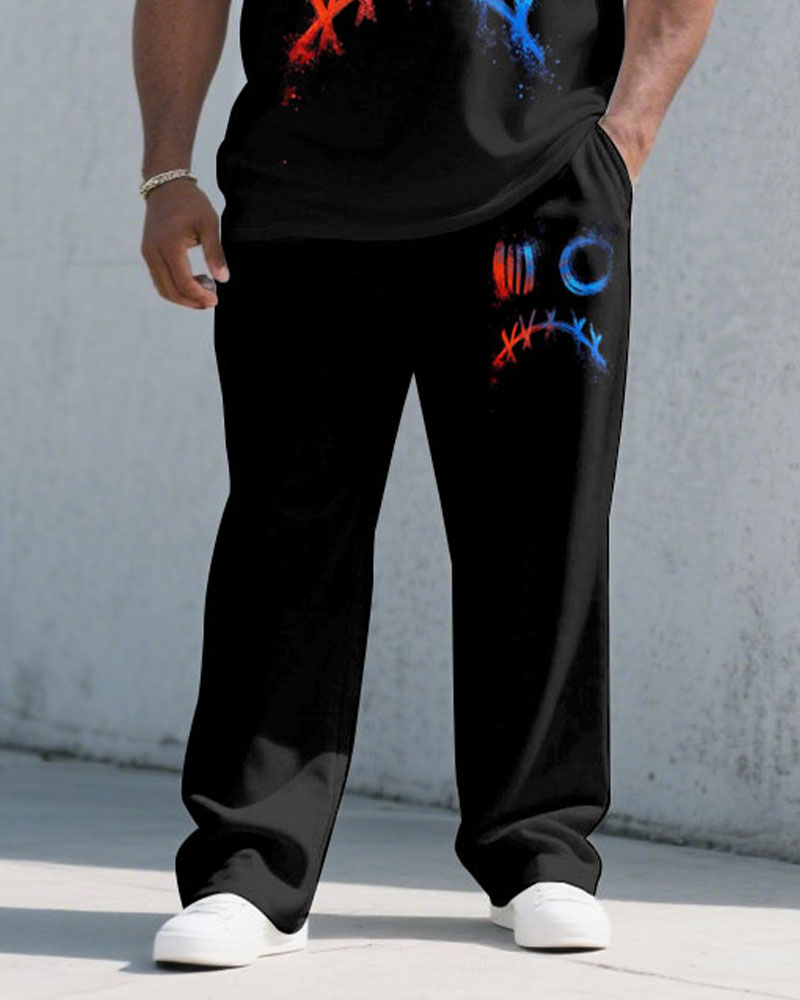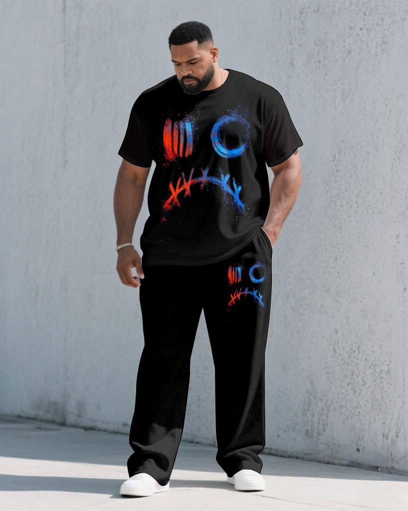 Men's Plus Size Fashion Street Black Chest Personality Graffiti Short Sleeve T-shirt Trousers Suit