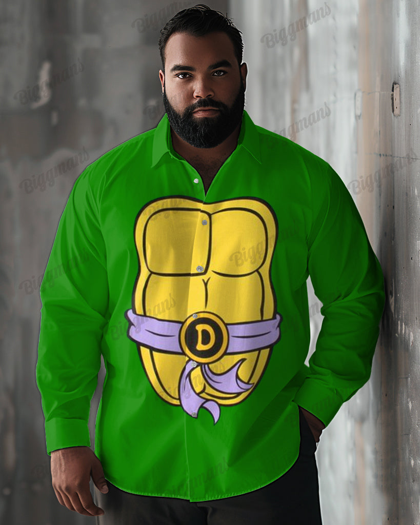 Men's Plus Size Fun Cartoon Turtle Print Long Sleeve Shirt