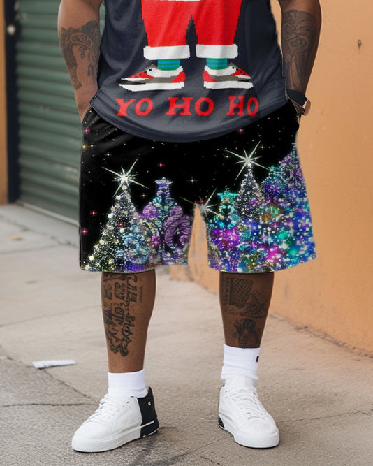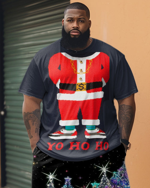 Men's Plus Size Fun Santa Claus Short Sleeve Shorts Set