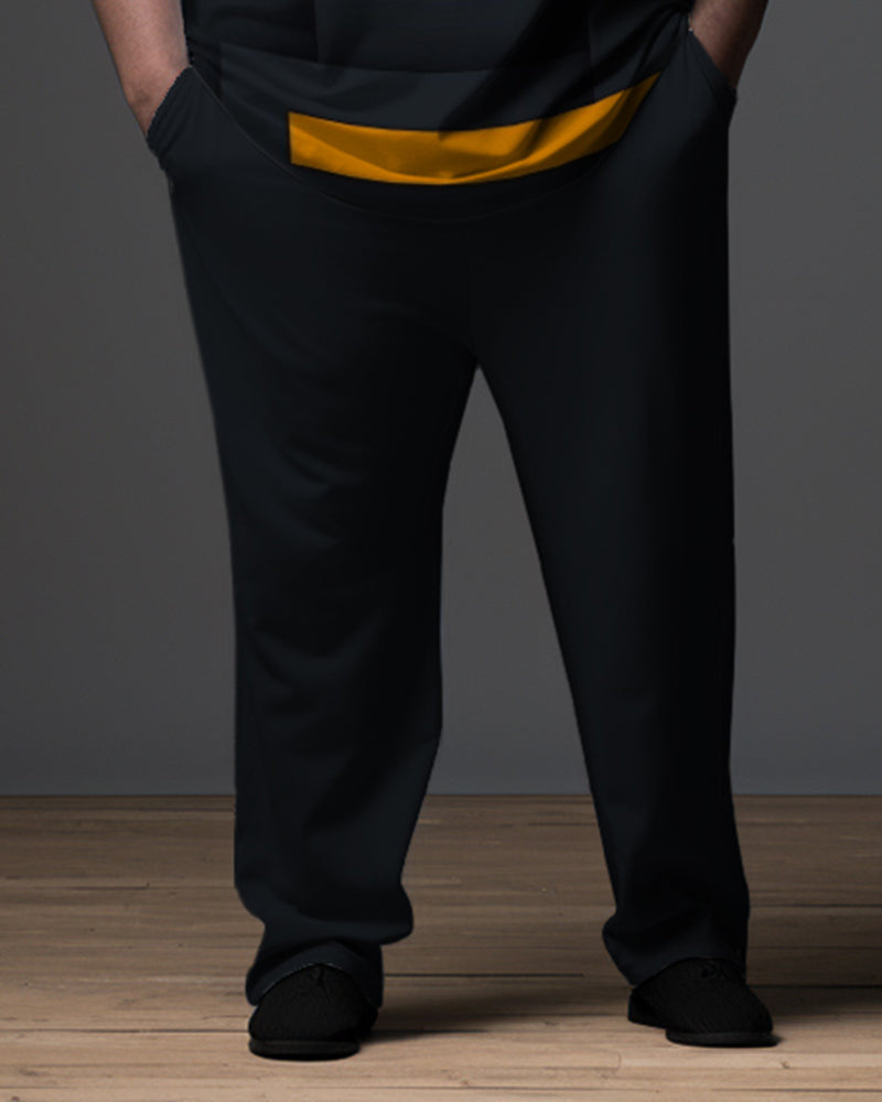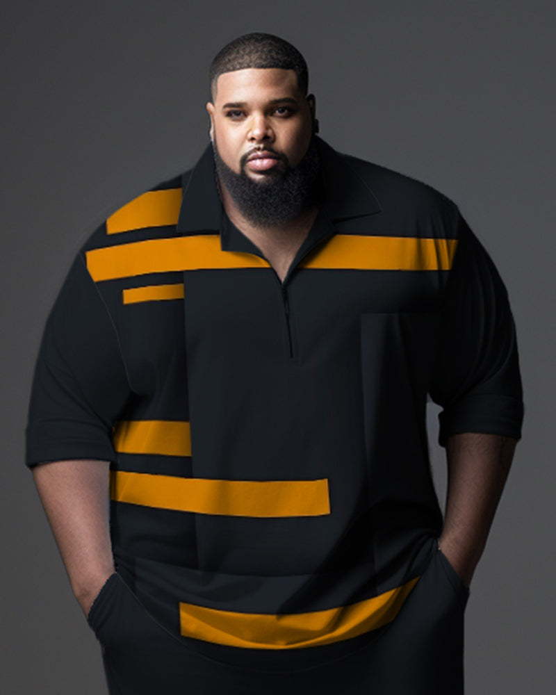 Enjoy the classic style and modern design with this polo set, featuring bold yellow color-block details. The relaxed fit and zipper collar are special and enhance your silhouette. Ideal for formal settings or a refined look, this set is a sophisticated choice for men who value style and comfort.