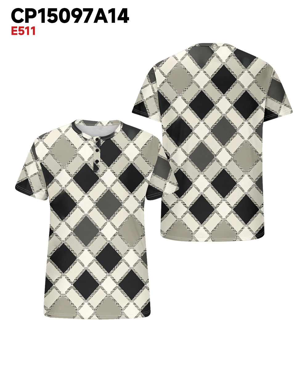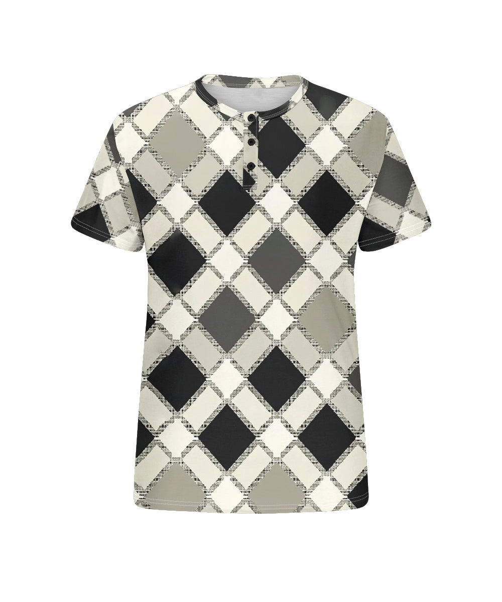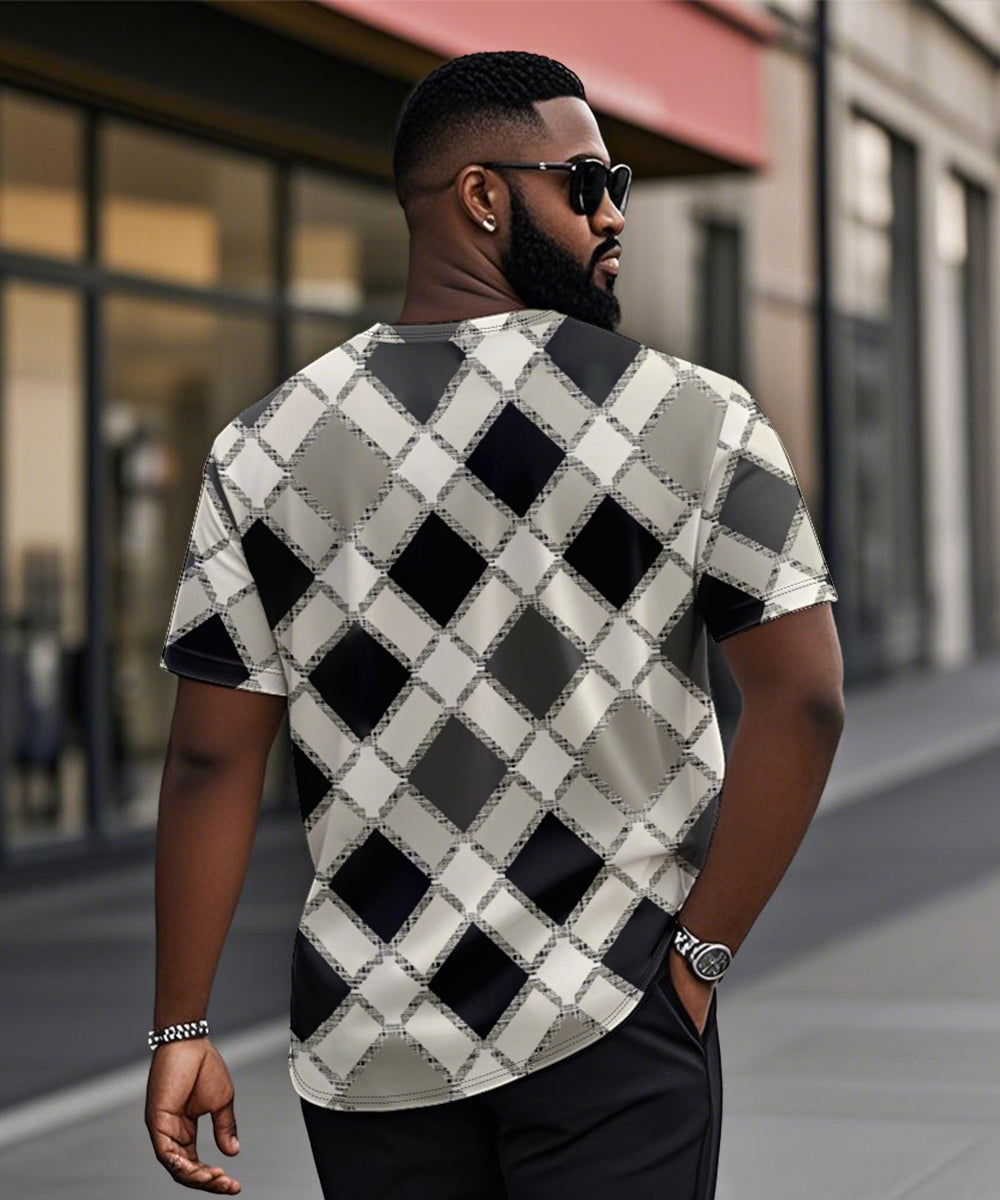 Men's Plus Size Geometric Diamond Print Henley Collar Button Short Sleeve T-shirt