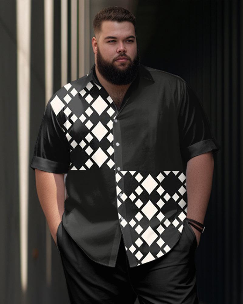 Men's Plus Size Geometric Patchwork Print Short Sleeve Shirt Trousers Suit