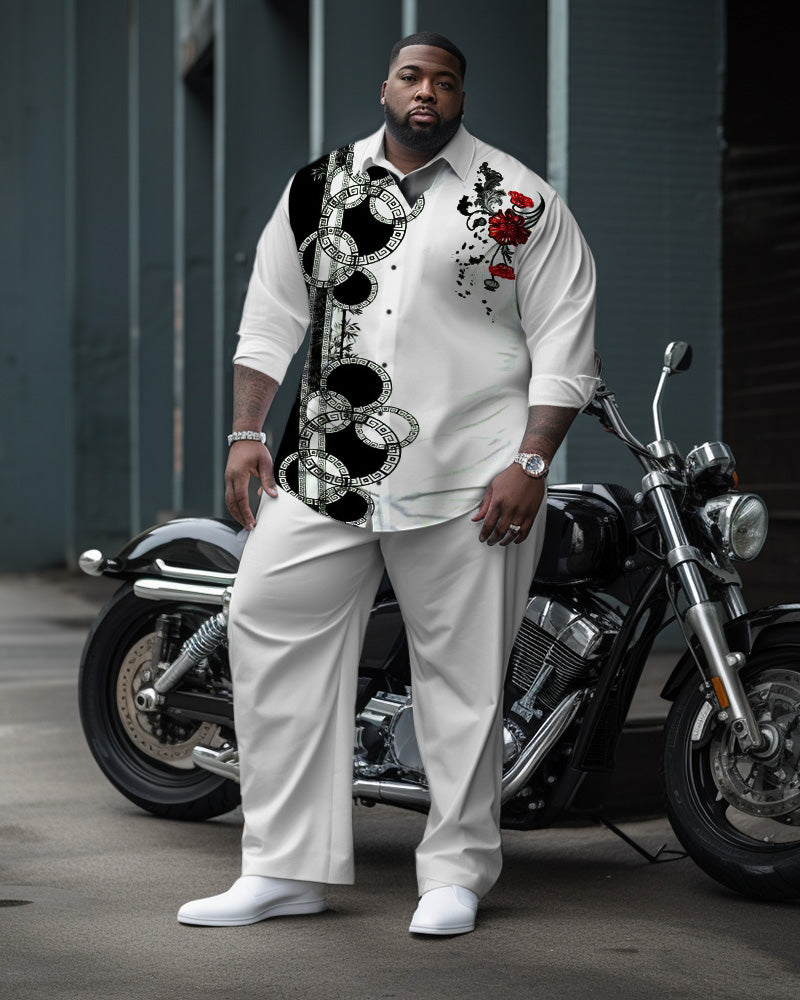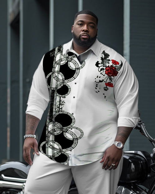 Step into a realm of allure with this men's walking set, printed with red plum blossom prints. The relaxed fit ensures comfort, ideal for autumn occasions. With its atmospheric vibe and adaptable design, this outfit effortlessly enhances your wardrobe with a touch of sophisticated flair.