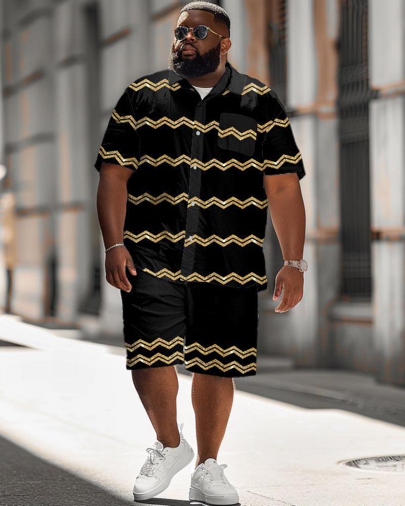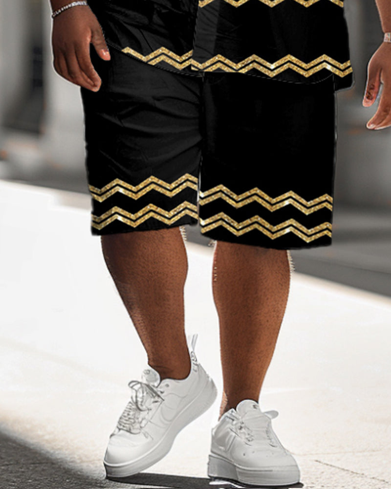 Men's Plus Size Geometric Wave Print Shirt Shorts Suit