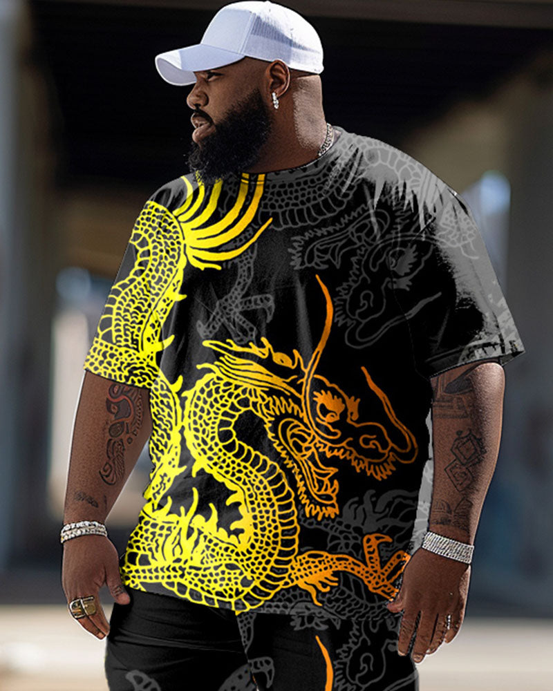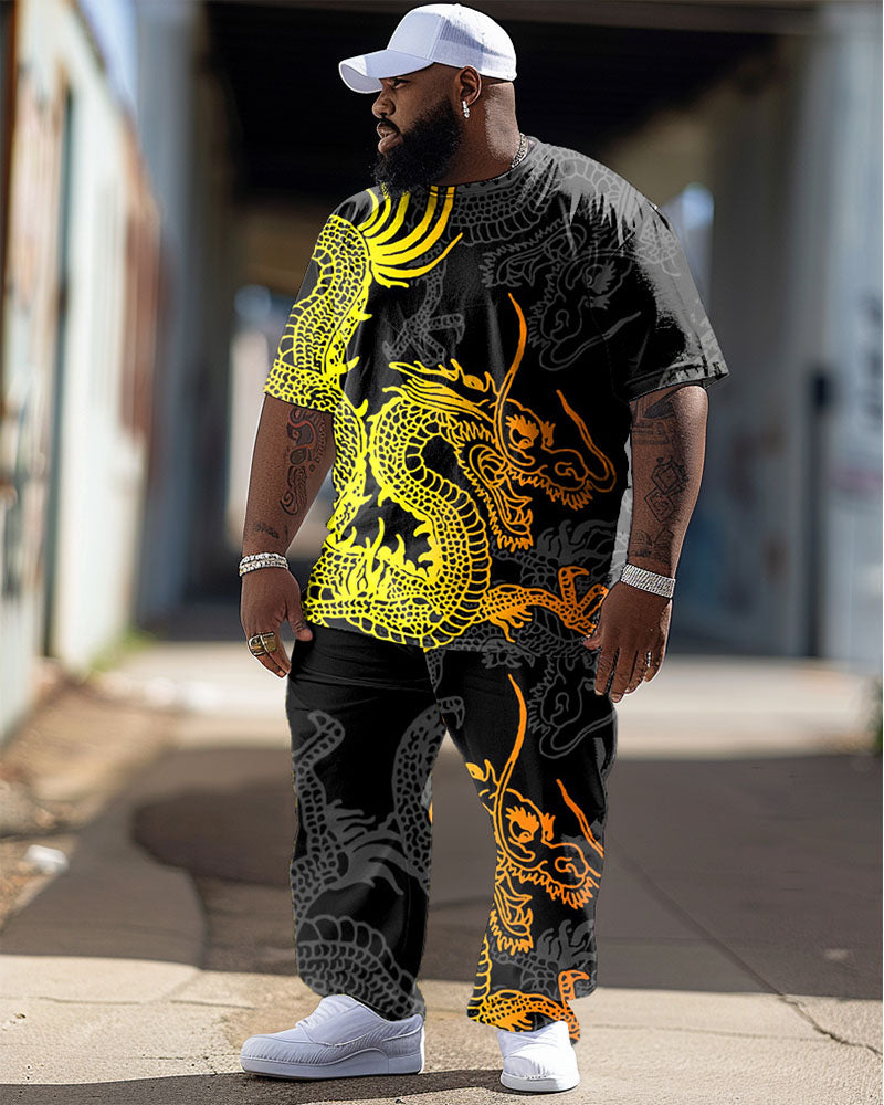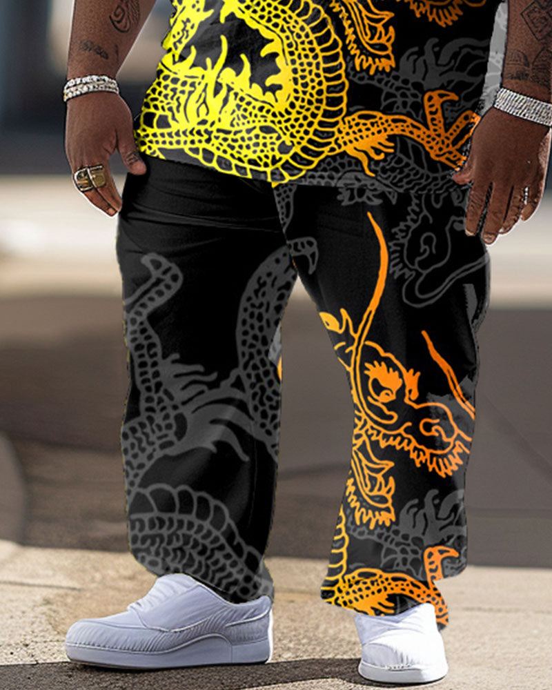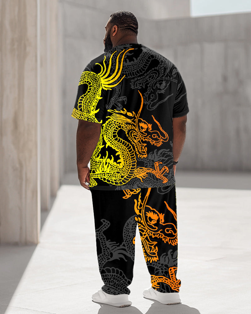 Men's Plus Size Gradient Dark Dragon Totem Print T-shirt Trousers Suit