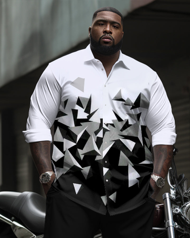 Elevate your style with this modern big & tall walking set, featuring an artistic gradient geometric pattern. This set strikes the balance between structured and comfortable, tailored at the shoulders, relaxed at the fit. Designed for layering and built for versatility, it’s your go-to for business or casual looks.