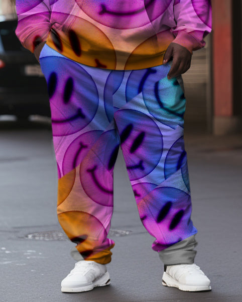 Men's Plus Size Gradient Smiley Face Hoodie Set of Two