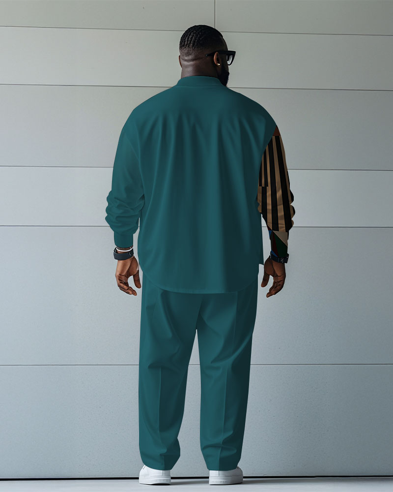 Made for plus size men, this men's suit is eye-catching and unique. The long-sleeved shirt and trousers are designed in a uniform green colour blocking and are full of energy. Abstract head cartoon printing personality to break the dull, for everyday wear into the trend of fun, both comfortable and stylish, easy to highlight the men's different charm.