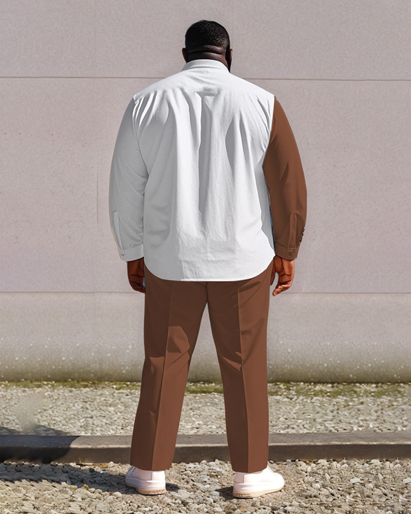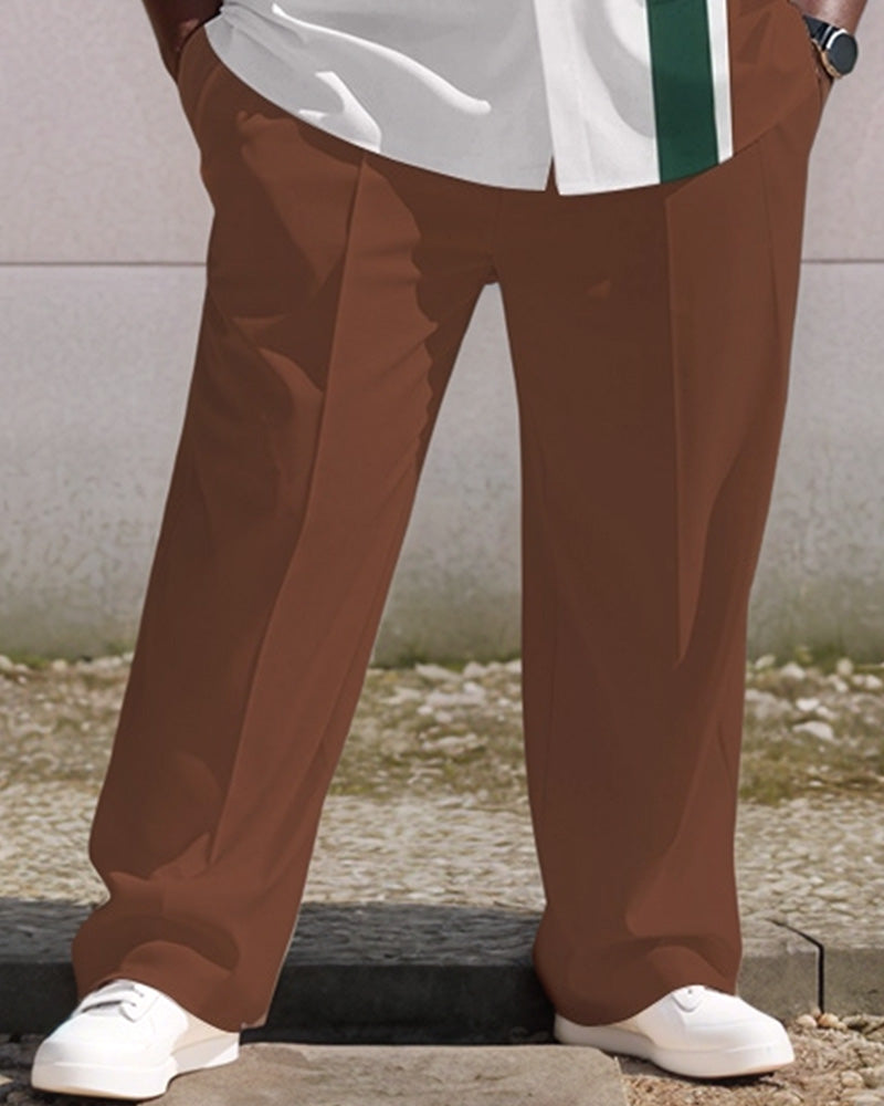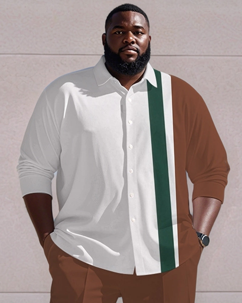 Men's Plus Size Green Brown White Colorblock Vertical Stripe Print Long Sleeve Shirt Trousers Suit