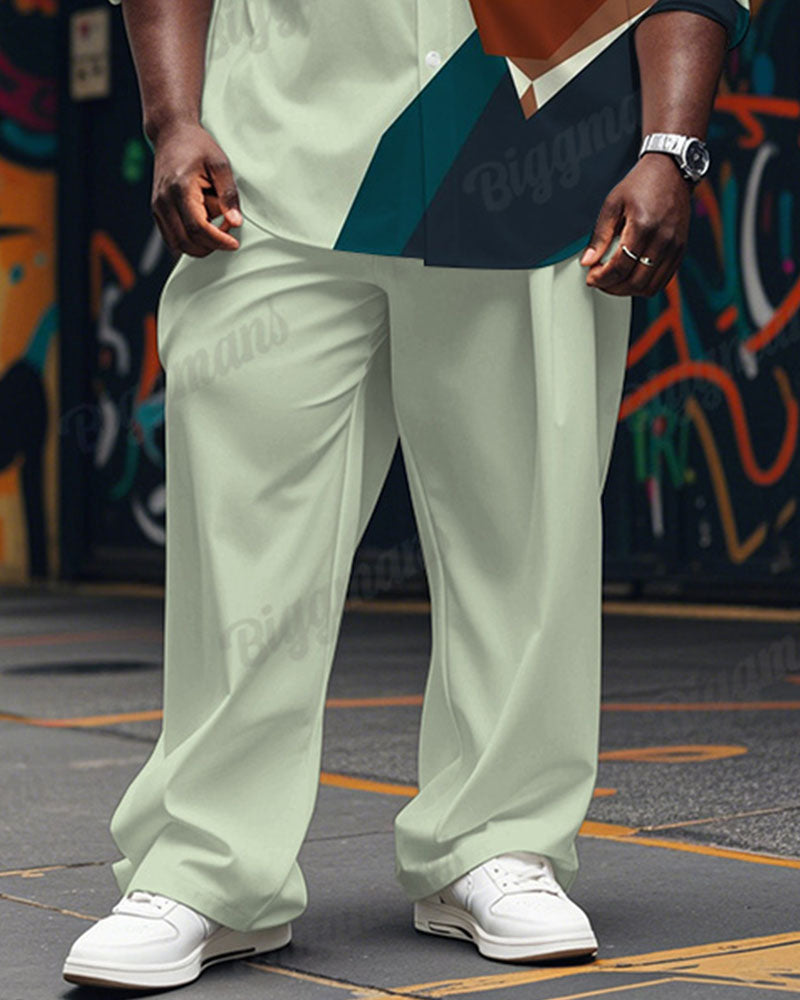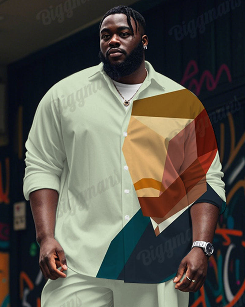This plus size men's suit is full of energy! Bright orange with colour blocking sweeps away the dullness and catches the eye instantly. Striped elements in order, giving a retro style, long-sleeved shirt is sharp and free, full of interesting prints to highlight the personality. Loose trousers cover up the flesh and show thinness, and the shirt is a perfect match, so that men can confidently exude trendy charm in their daily travels.