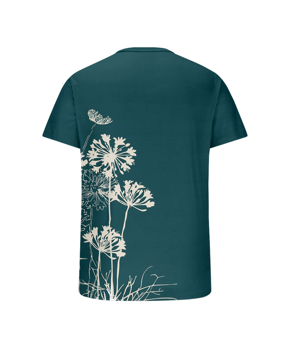 Men's Plus Size Green Dandelion Print Henry Collar Button Short Sleeve Tee