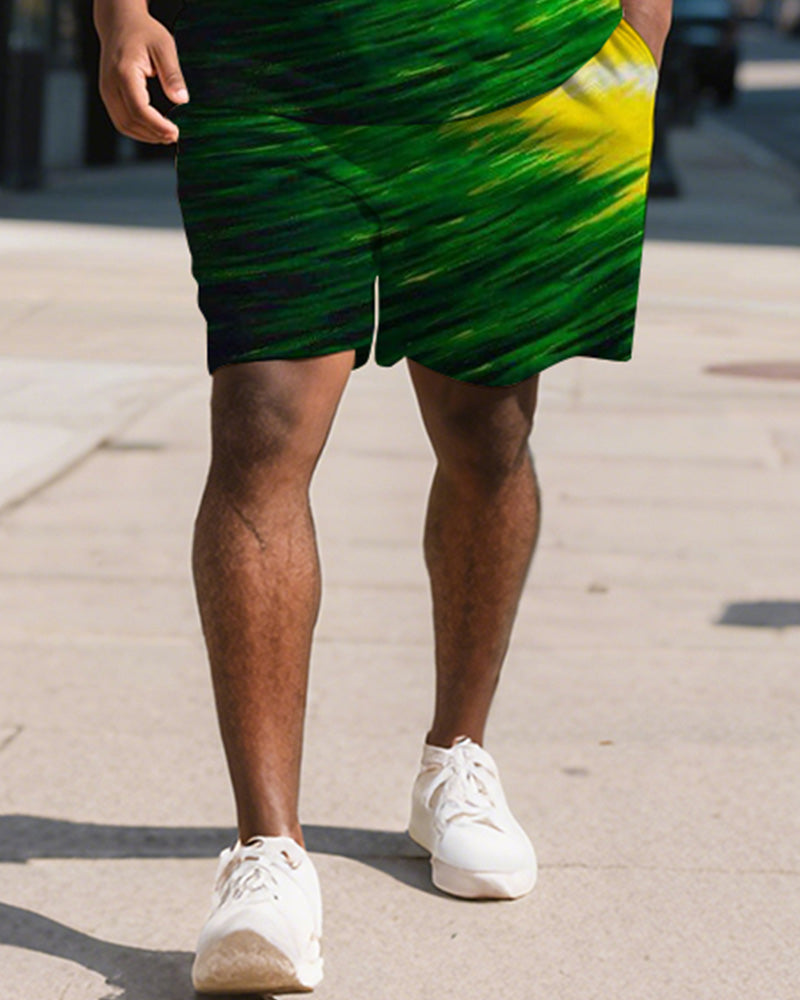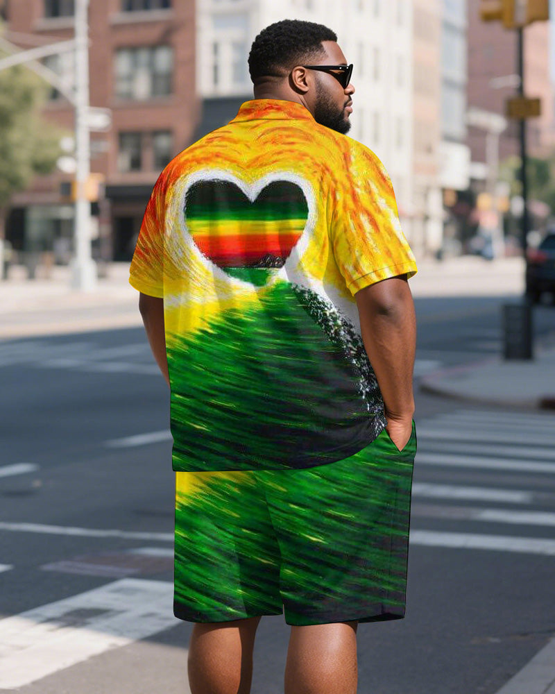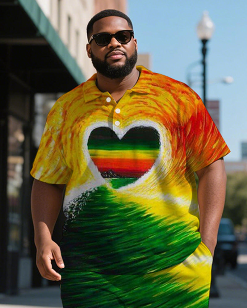 Men's Plus Size Green Yellow Red Gradient Love Print Short Sleeve Polo Shirt Shorts Suit