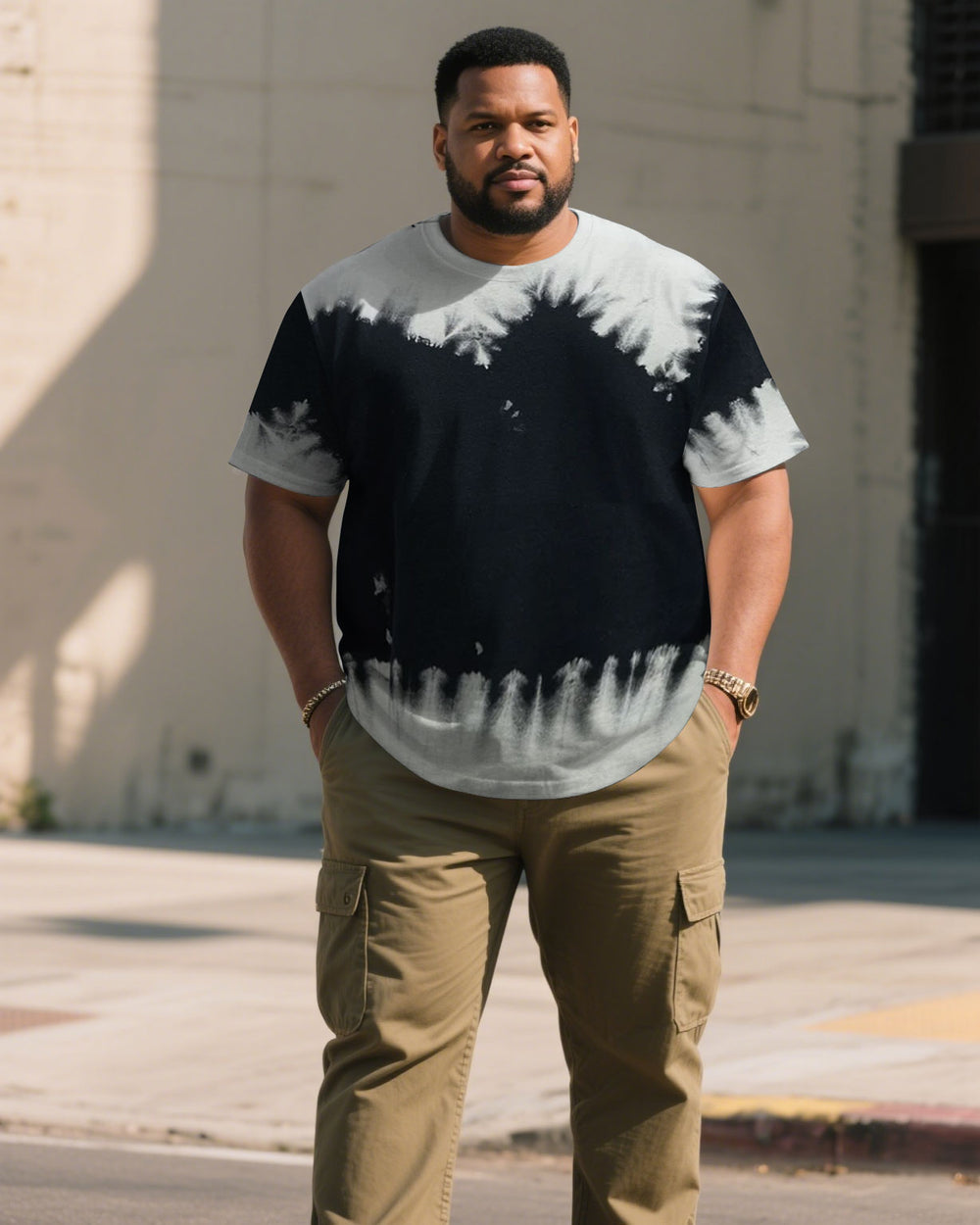 Men's Plus Size Grey & Black Tie-Dye Contrast Loose Round Neck Short Sleeve Tee