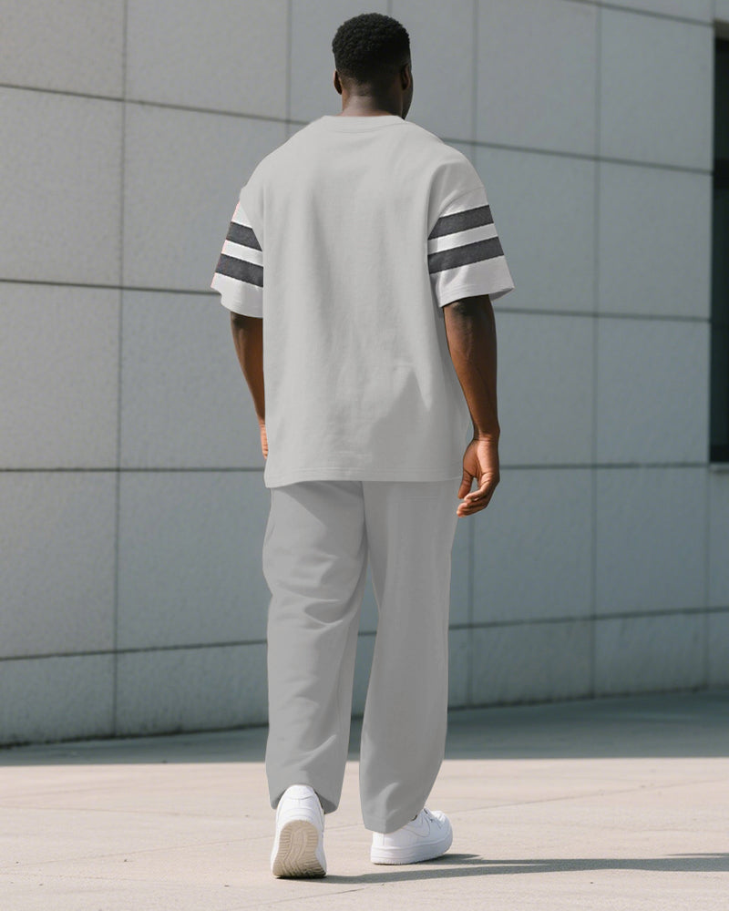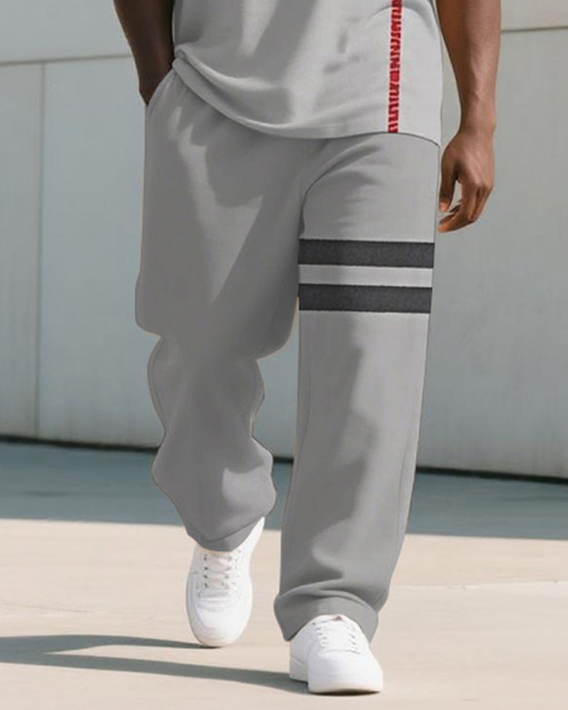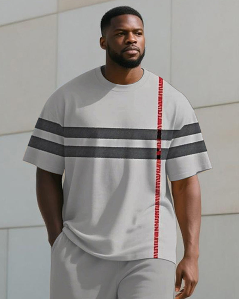 Men's Plus Size Grey Colorblock Striped Alphabet Print T-Shirt Trousers Suit