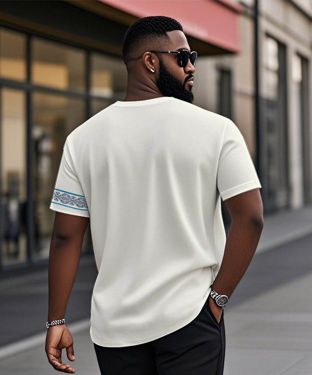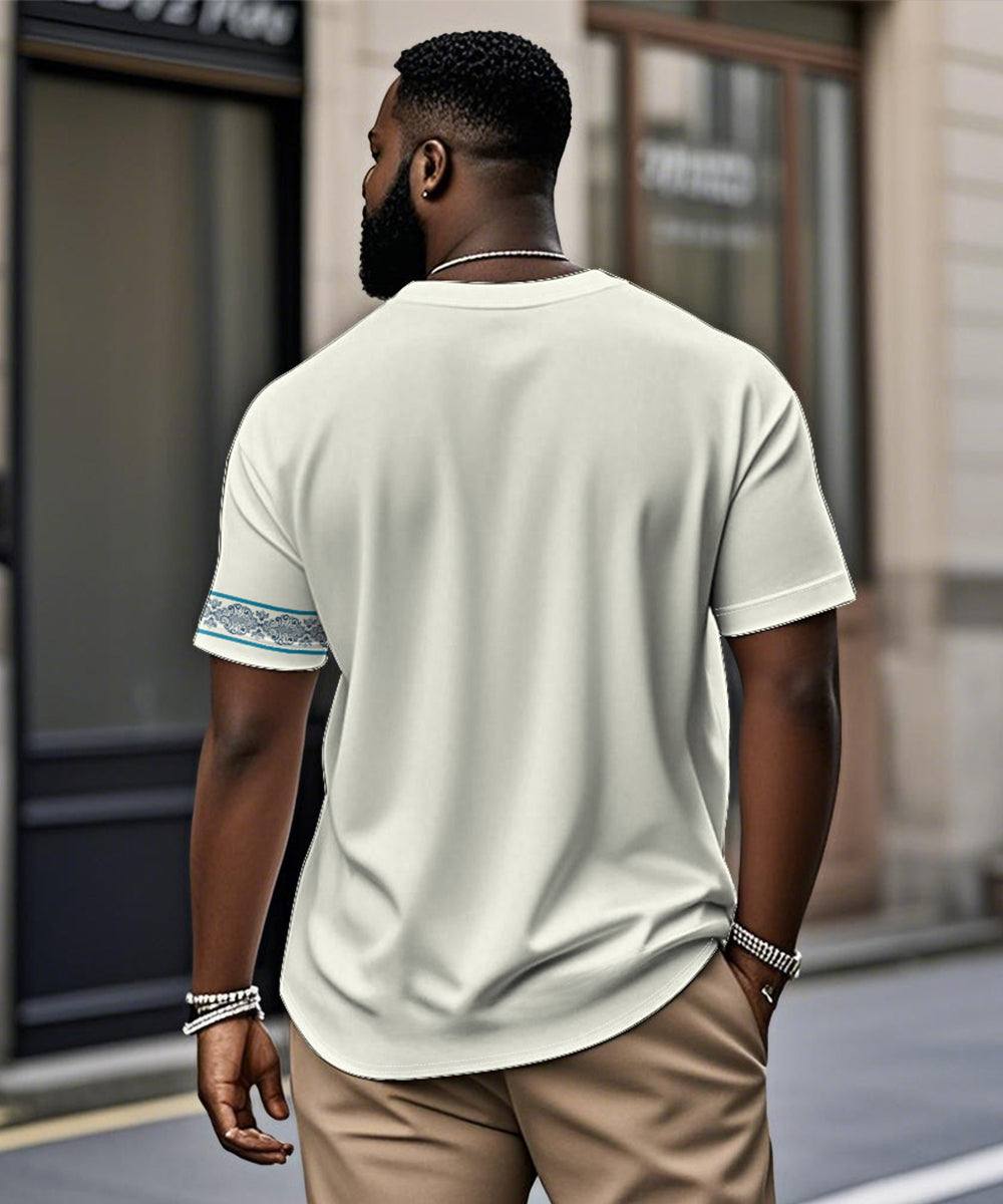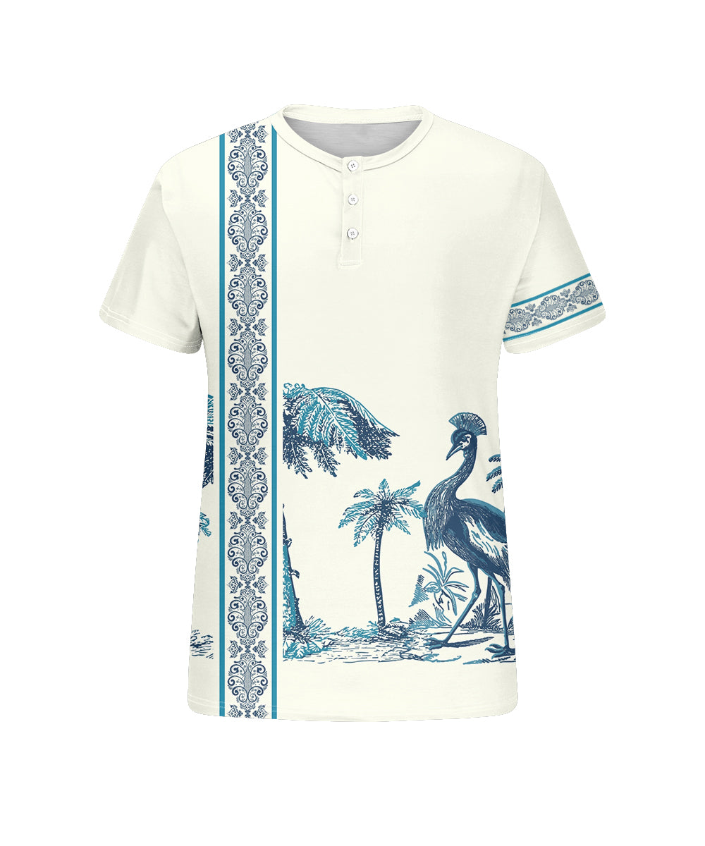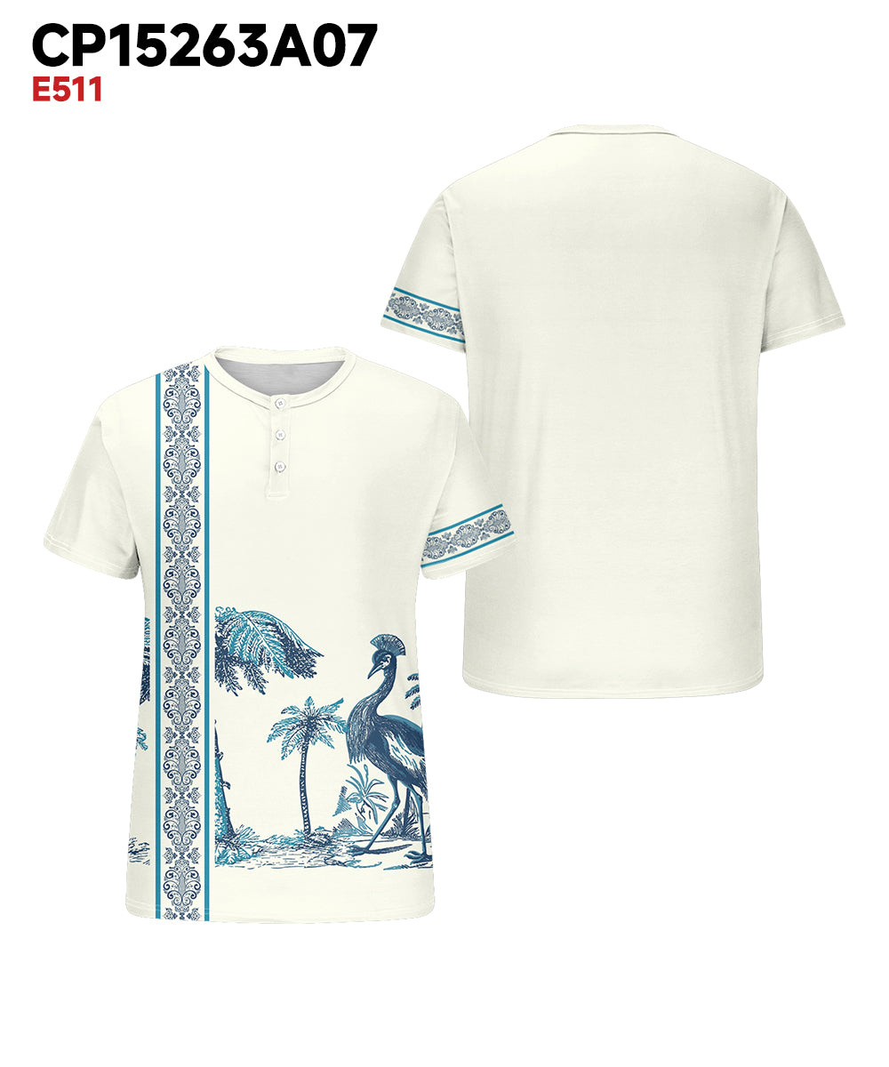 Men's Plus Size Hawaiian Blue Peacock Print Henry Collar Button Short Sleeve Tee