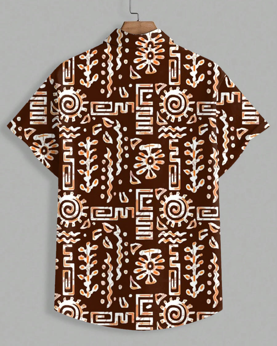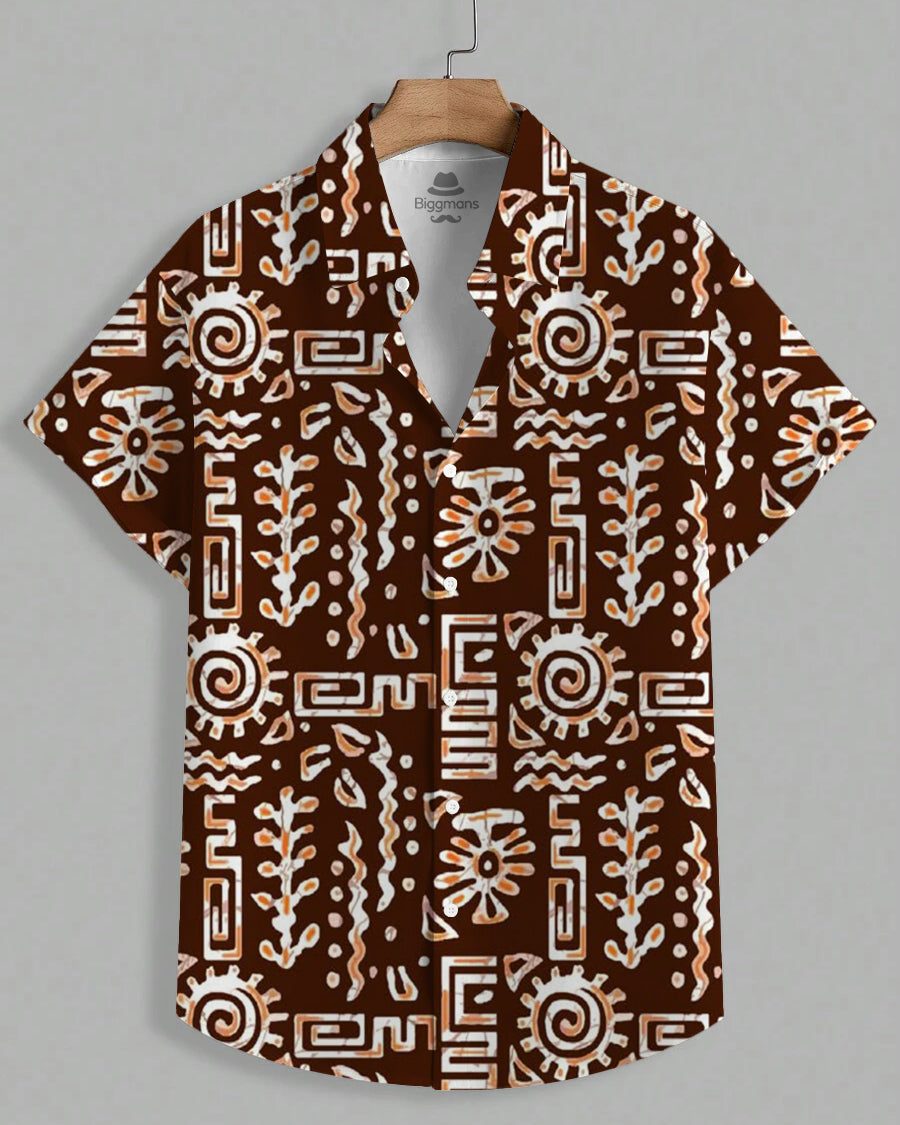 This men's plus size short sleeve shirt is Hawaiian inspired with a subdued brown color scheme. It is covered with tribal text art prints, unique and mysterious, full of exotic style. With a loose fit and plus size body, this shirt is comfortable to wear and can easily become the center of attention whether you are strolling on the beach or at a casual party.