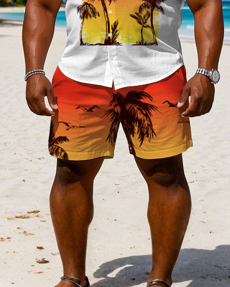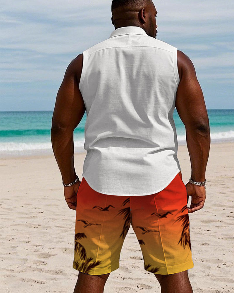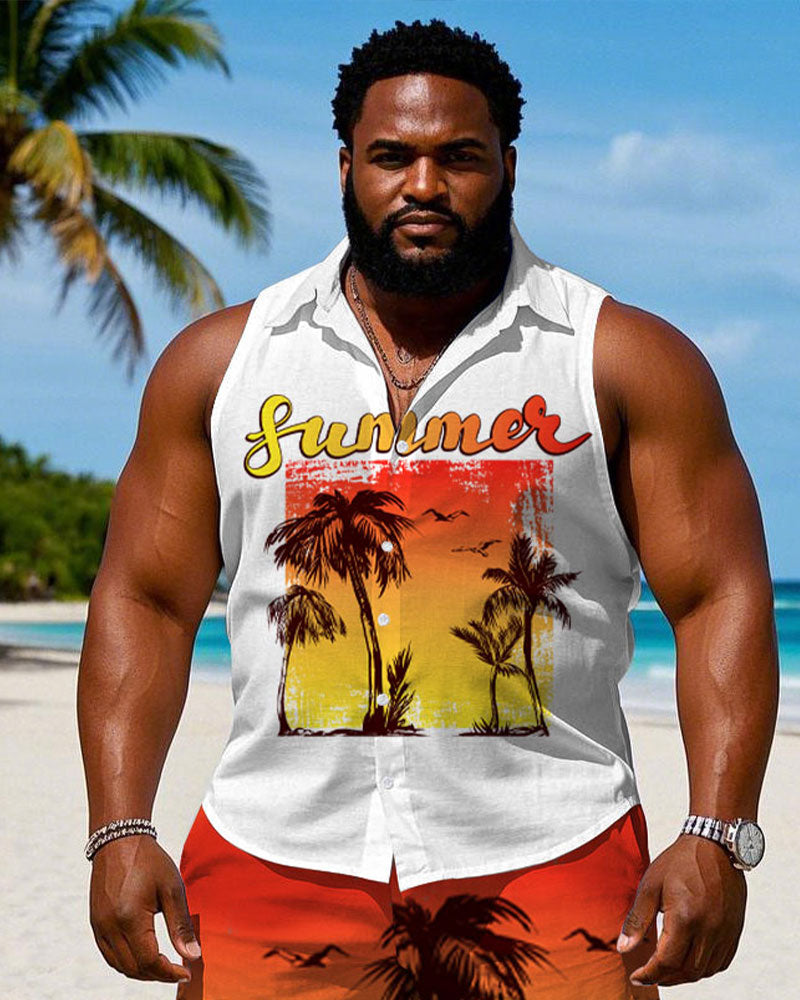 Men's Plus Size Hawaiian Chest Print Sun Sleeveless Vest Shirt Shorts Suit