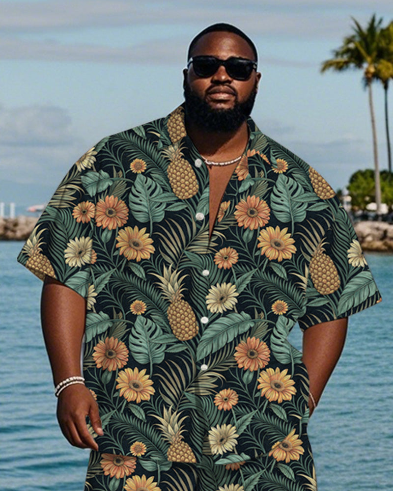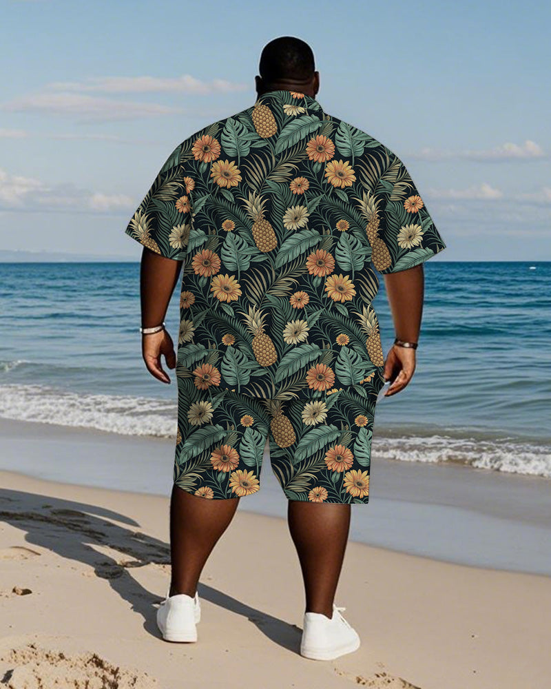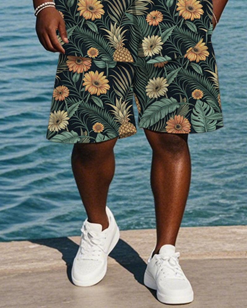 Men's Plus Size Hawaiian Chrysanthemum Pineapple Leaf Print Shirt Shorts Suit