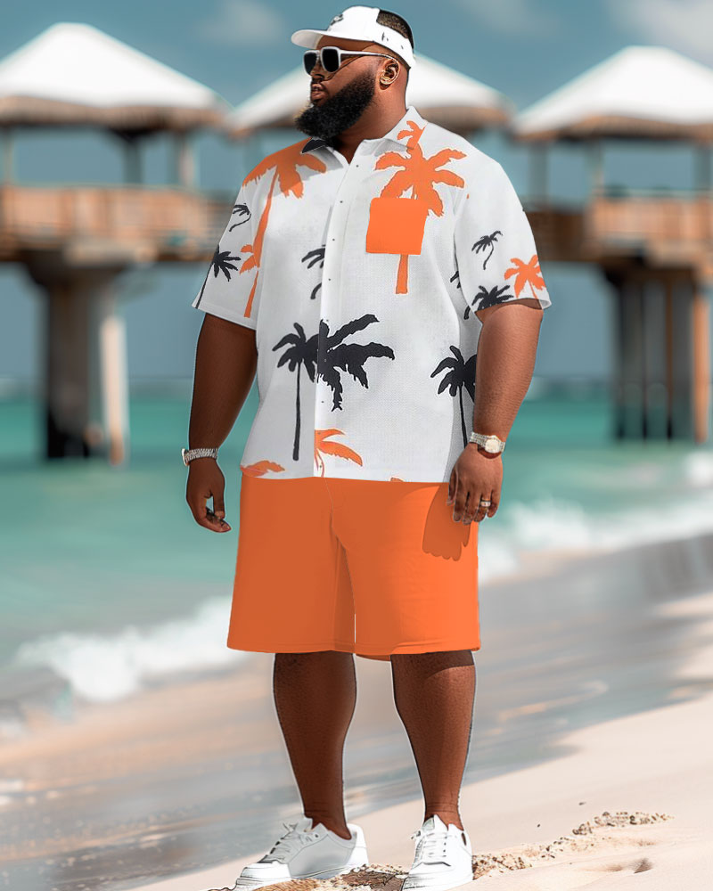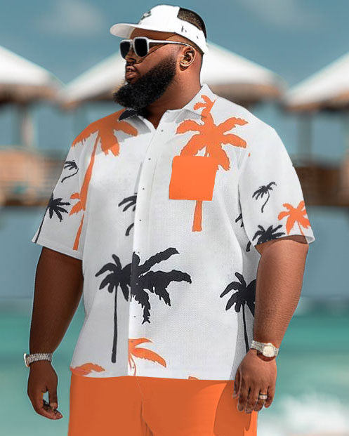 Put on this and start your tropical vacation! The soft and comfortable shirt is printed with swaying coconut trees. Paired with bright orange shorts, it instantly brightens up your summer outfit. The loose fit ensures your comfort and allows you to show your charm on different occasions.