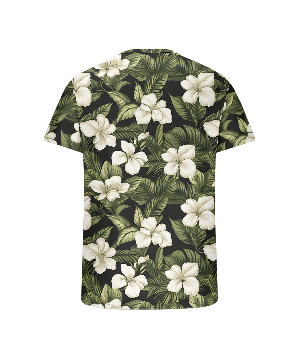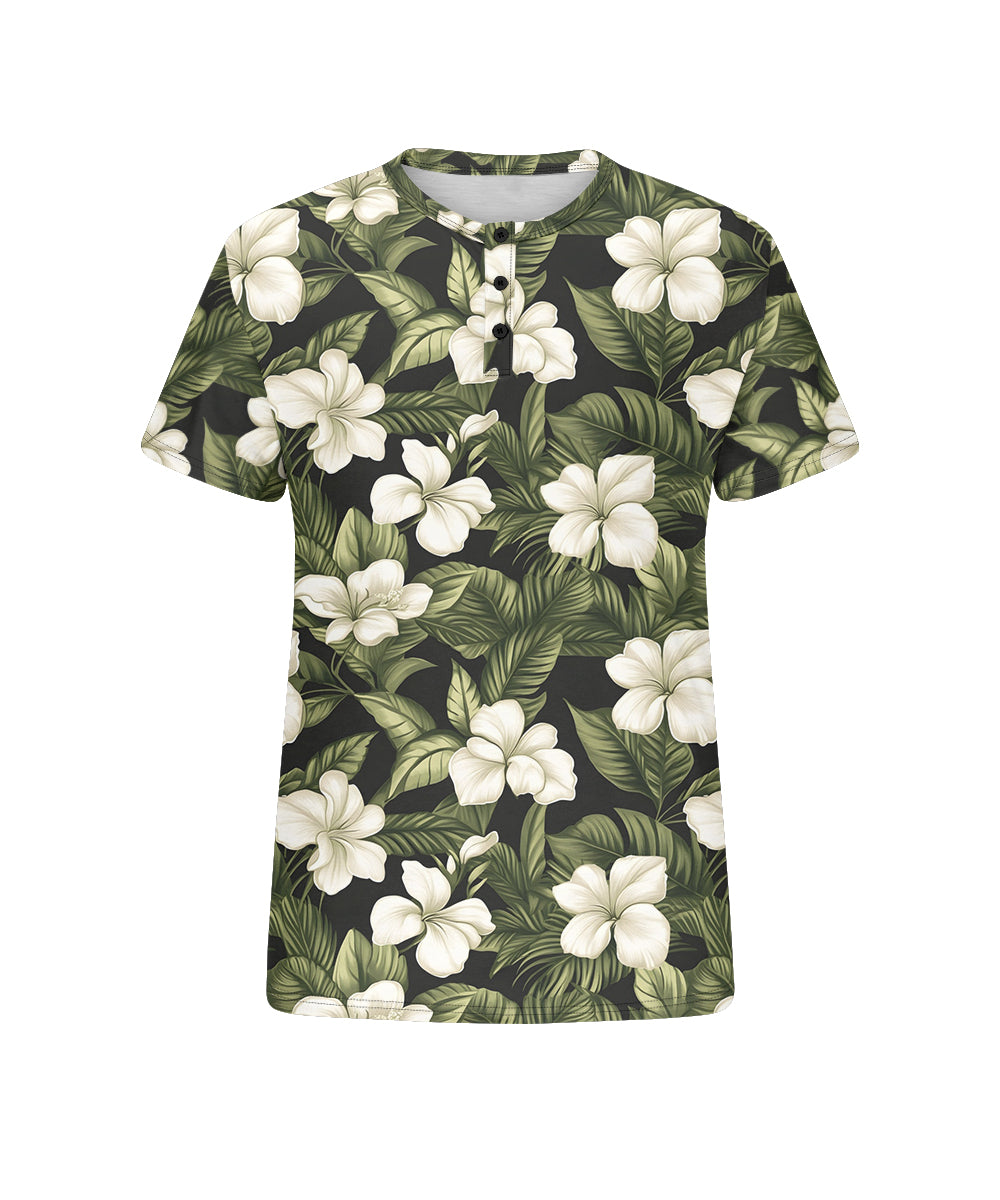 Men's Plus Size Hawaiian Floral Print Henry Collar Button Short Sleeve Tee
