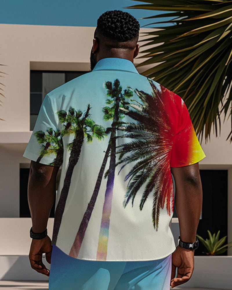 Men's Plus Size Hawaiian Gradient Beach Letter Print Short Sleeve Shirt