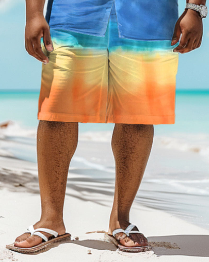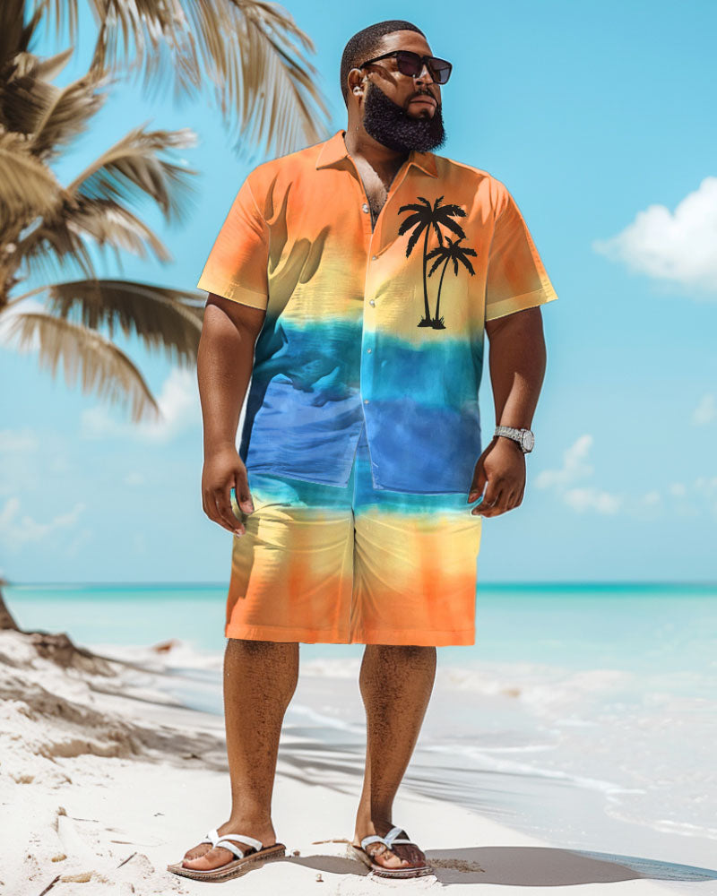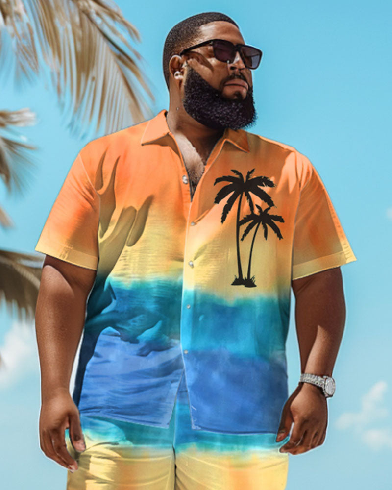 Immerse yourself in the tropical atmosphere of Hawaii with colors. This big and tall guy's set evokes island memories with its gradient style. The coconut tree print leads the trend. The loose version design makes it comfortable to wear. It can easily create a colorful summer look, allowing you to enjoy a Hawaiian style.