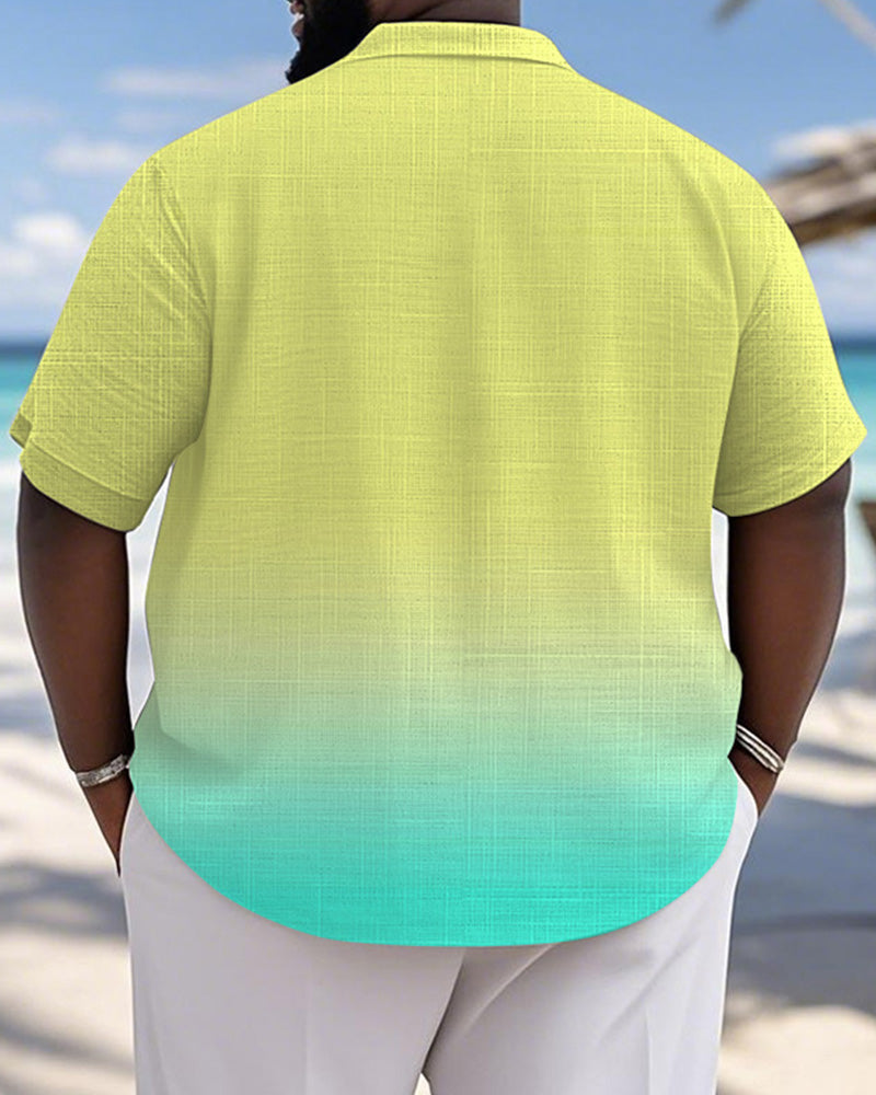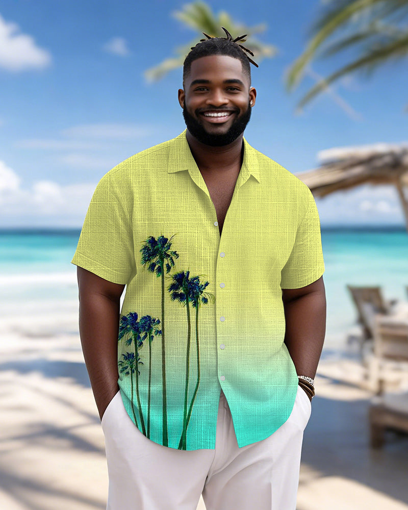 Men's Plus Size Hawaiian Gradient Coconut Tree Print Short Sleeve Slub Shirt