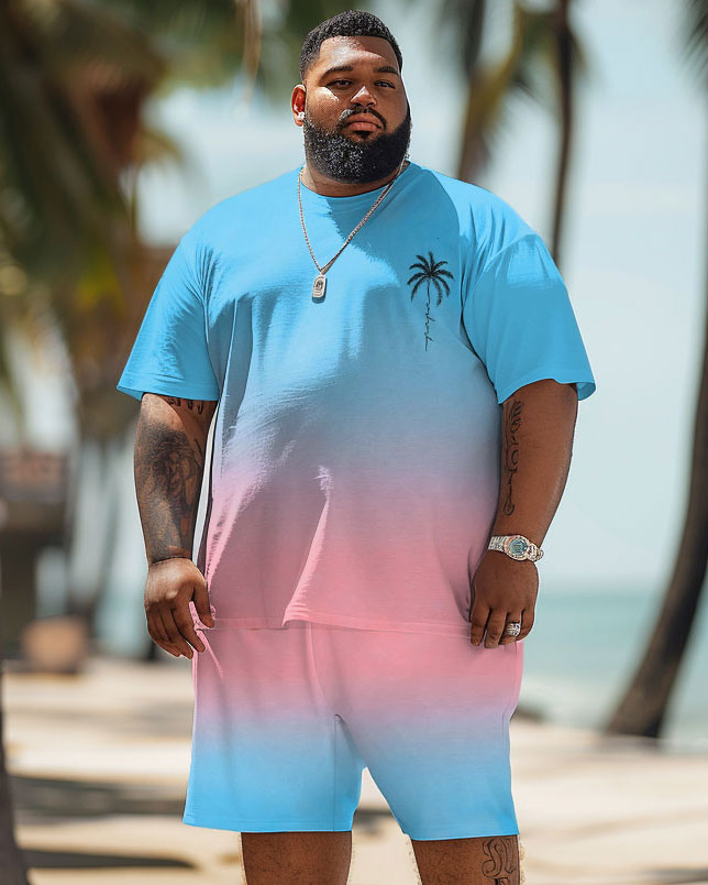 Elevate your summer style with our big men's Hawaiian-style two-piece set, featuring a stunning blue-to-pink . Simple yet striking, this set captures the essence of laid-back tropical vibes. This ensemble embodies a minimalist style, perfect for those who appreciate effortless street fashion.