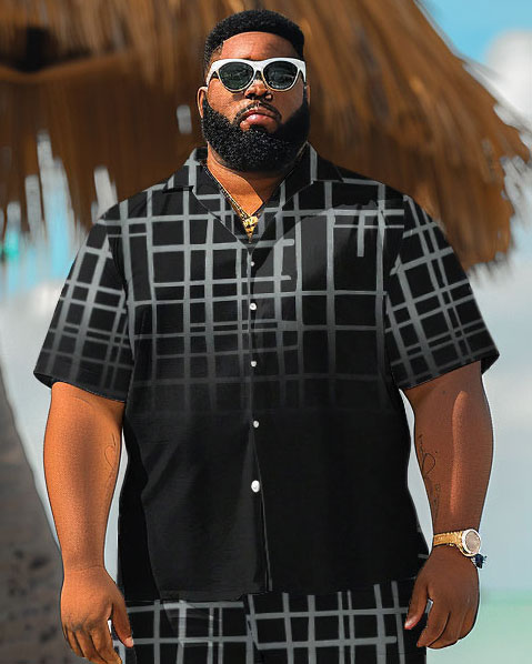 This set for big and tall men combines black gradient with style, where classic meets contemporary. The plaid design fades seamlessly for a bold yet subtle effect, while the relaxed fit offers comfort for any occasion. Its understated elegance and modern simplicity make it ideal for classic fashion.