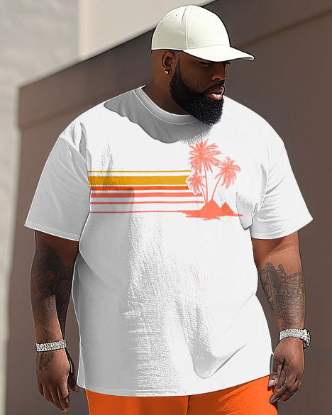 Men's Plus Size Hawaiian Gradient Stripe Coconut Tree Print T-Shirt Pants Suit